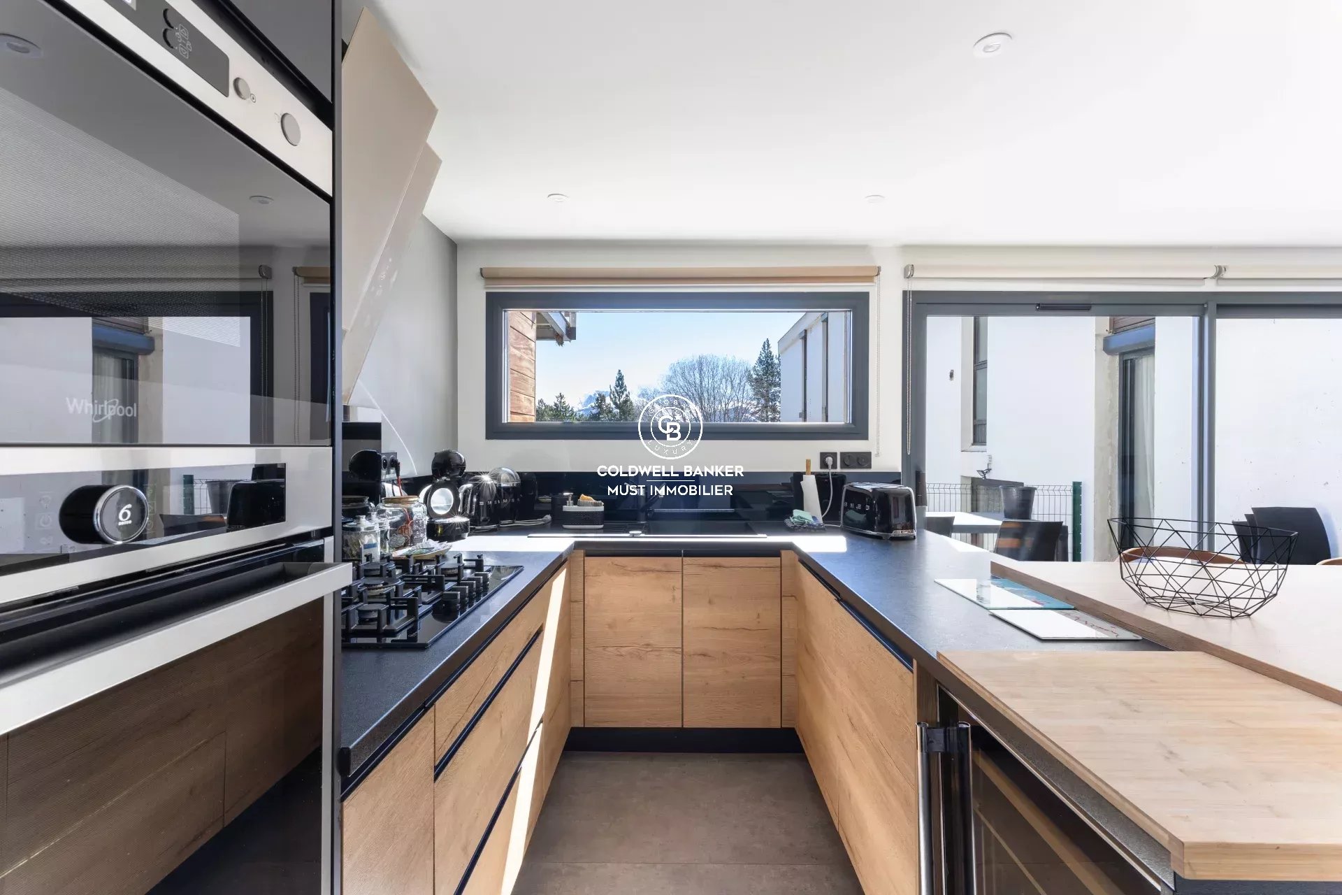 Le bien s’articule autour d’un vaste séjour avec cuisine ouverte de plus de 40 m² prolongé par une terrasse ensoleillée, cadre exceptionnel avec une vue sur la nature environnante et les montagnes.