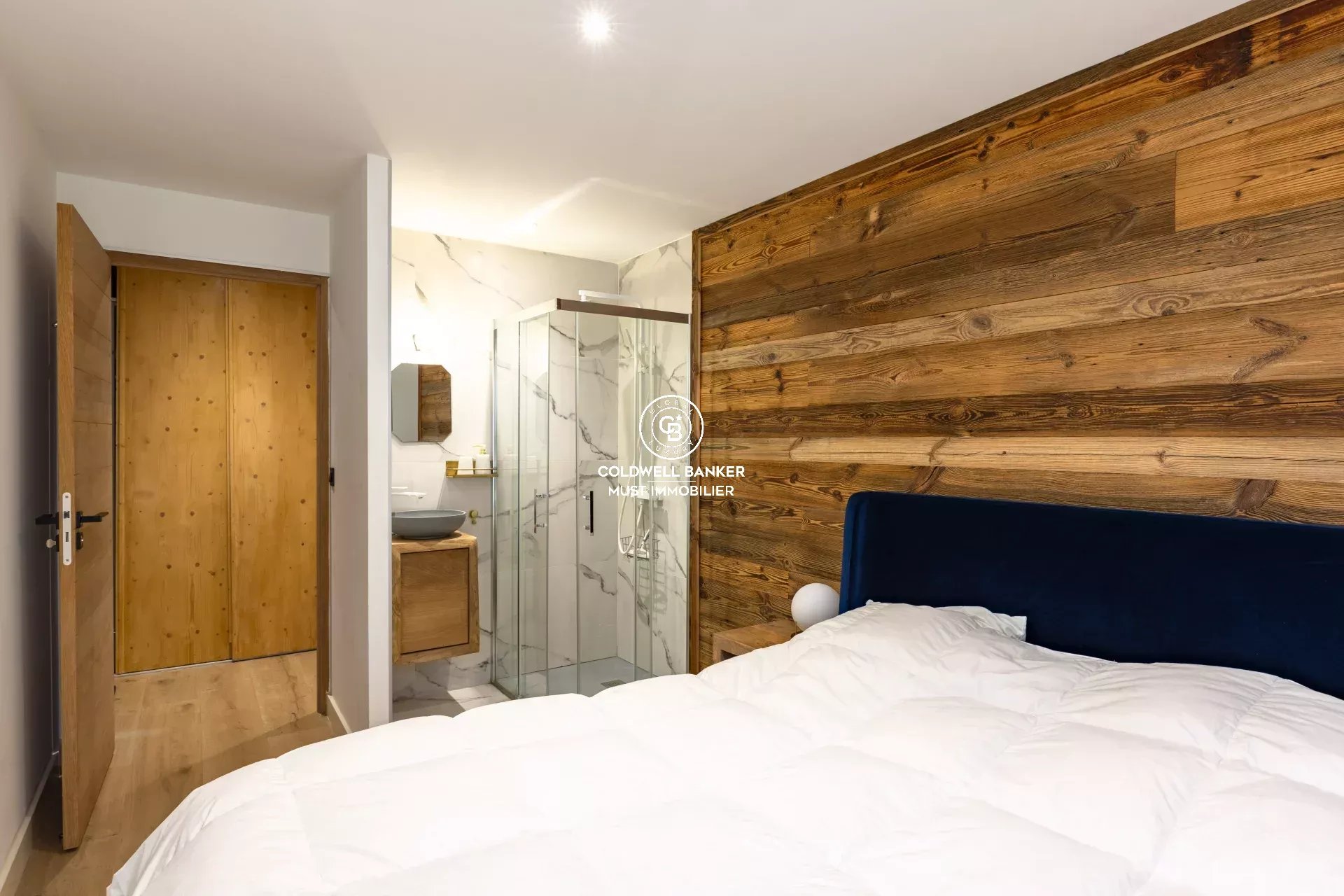 Côté nuit, l’appartement dispose de deux chambres, dont une suite avec sa salle d’eau, ainsi qu’une seconde salle d’eau intégrant un espace buanderie.