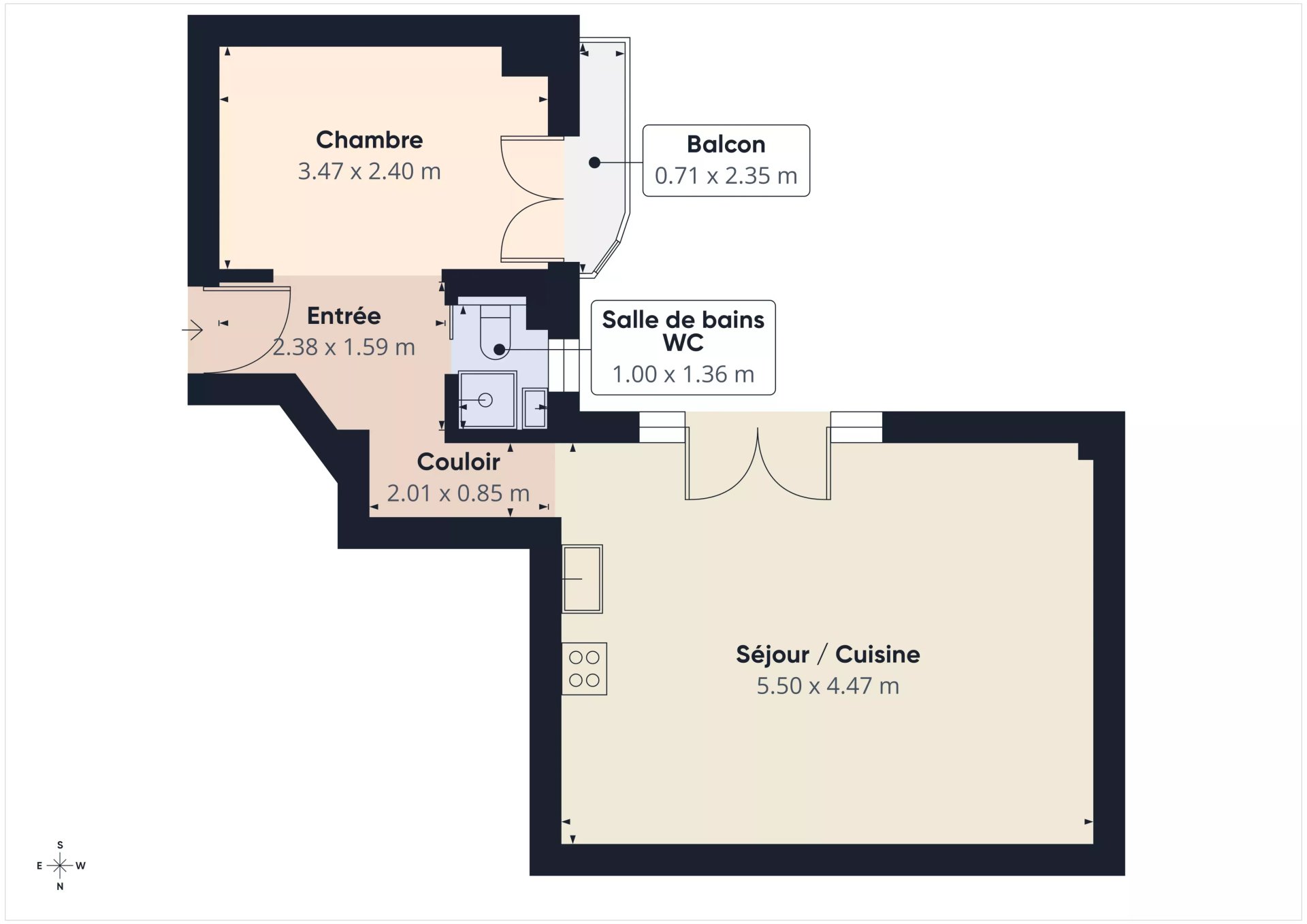 L'appartement est en excellent état, il bénéficie d'un séjour/cuisine meublée et équipée de 24.20m² exposé SUD, d'un chambre avec placards de 8.33 ouvrant sur un balcon exposé OUEST, d'une petite salle de douche/WC.