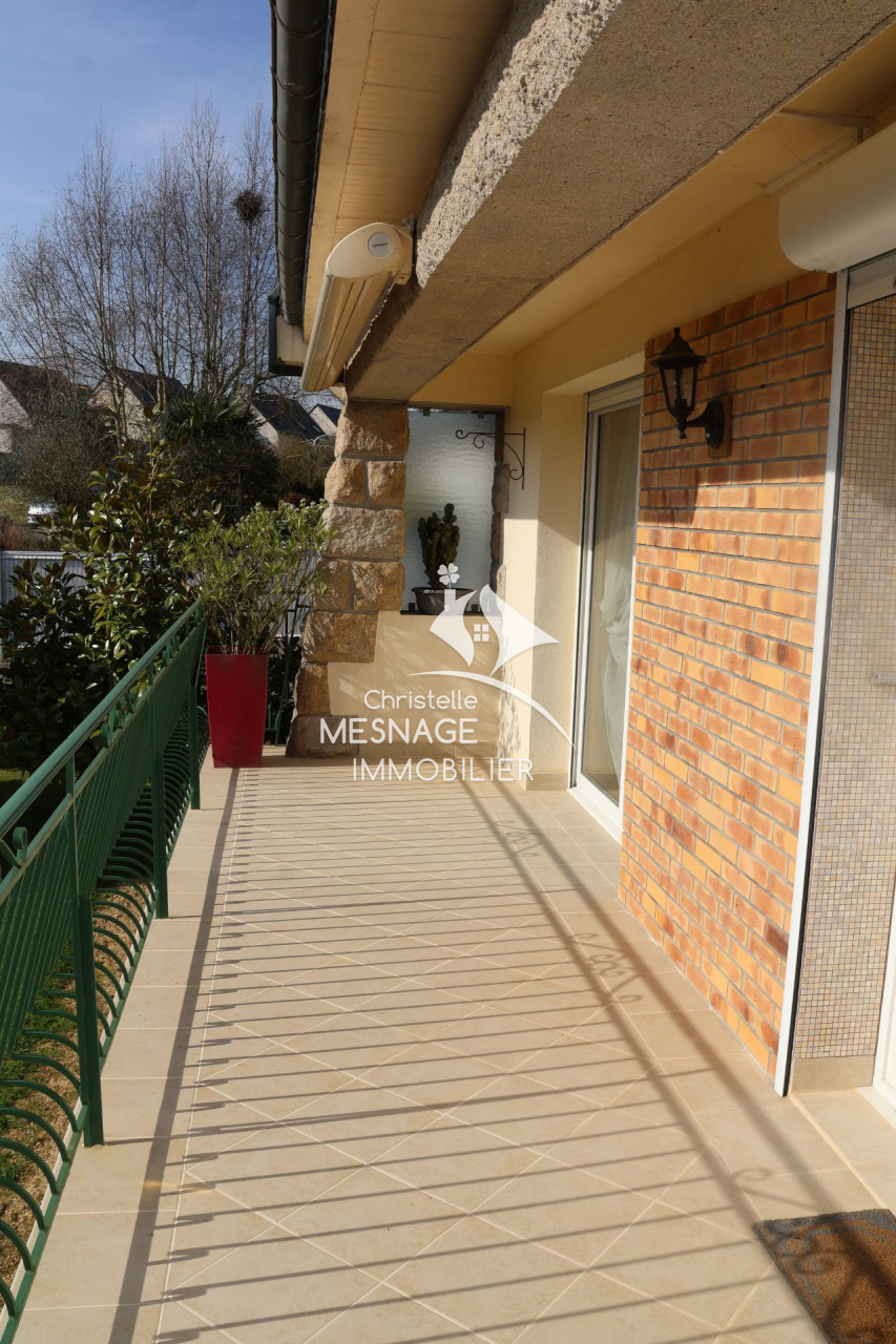 À vendre chez Christelle Mesnage, Exclusivité, à la sortie de Dinan, belle maison néo-bretonne de 135m² habitables offrant, une entrée, un spacieux séjour, une cuisine équipée, 4 chambres dont une au rez-de-chaussée, un bureau, 2 salles d'eau et 2 wc, des placards, un garage et une buanderie. Le tout sur un terrain de 455m². Maison saine et lumineuse, secteur calme.vue dégagée, commerce à pied et dinamo à proximité.