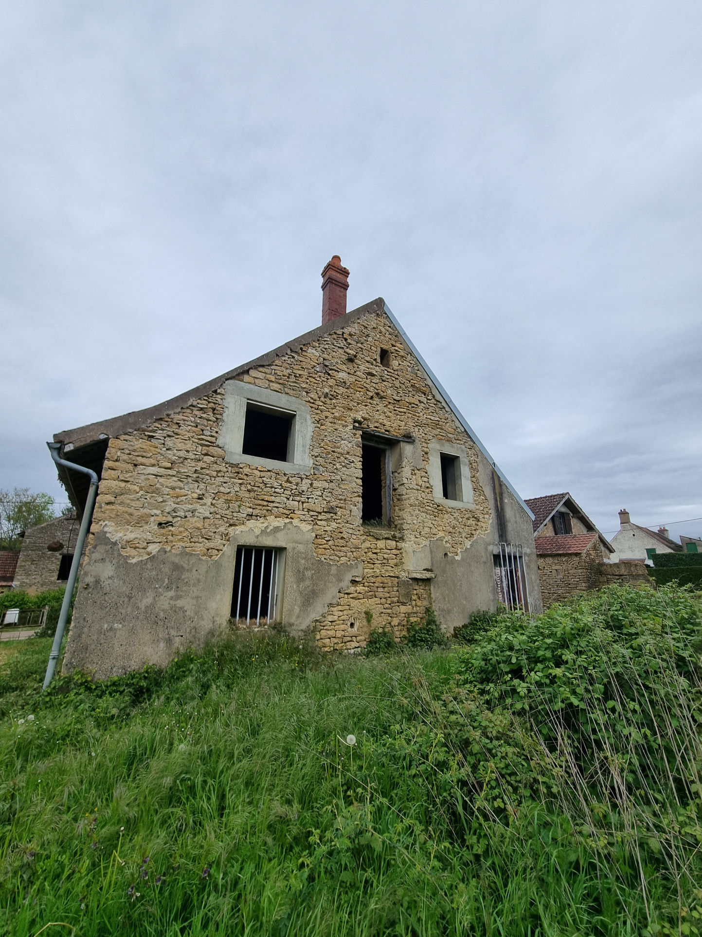 Sur un terrain de 1317 m2, un ensemble immobilier composé d'une maison d'environ 44 m2 sur deux niveaux, en cours de rénovation avec un garage de 31 m2, d'une ancienne étable d'environ 112 m2 transformable en habitation.