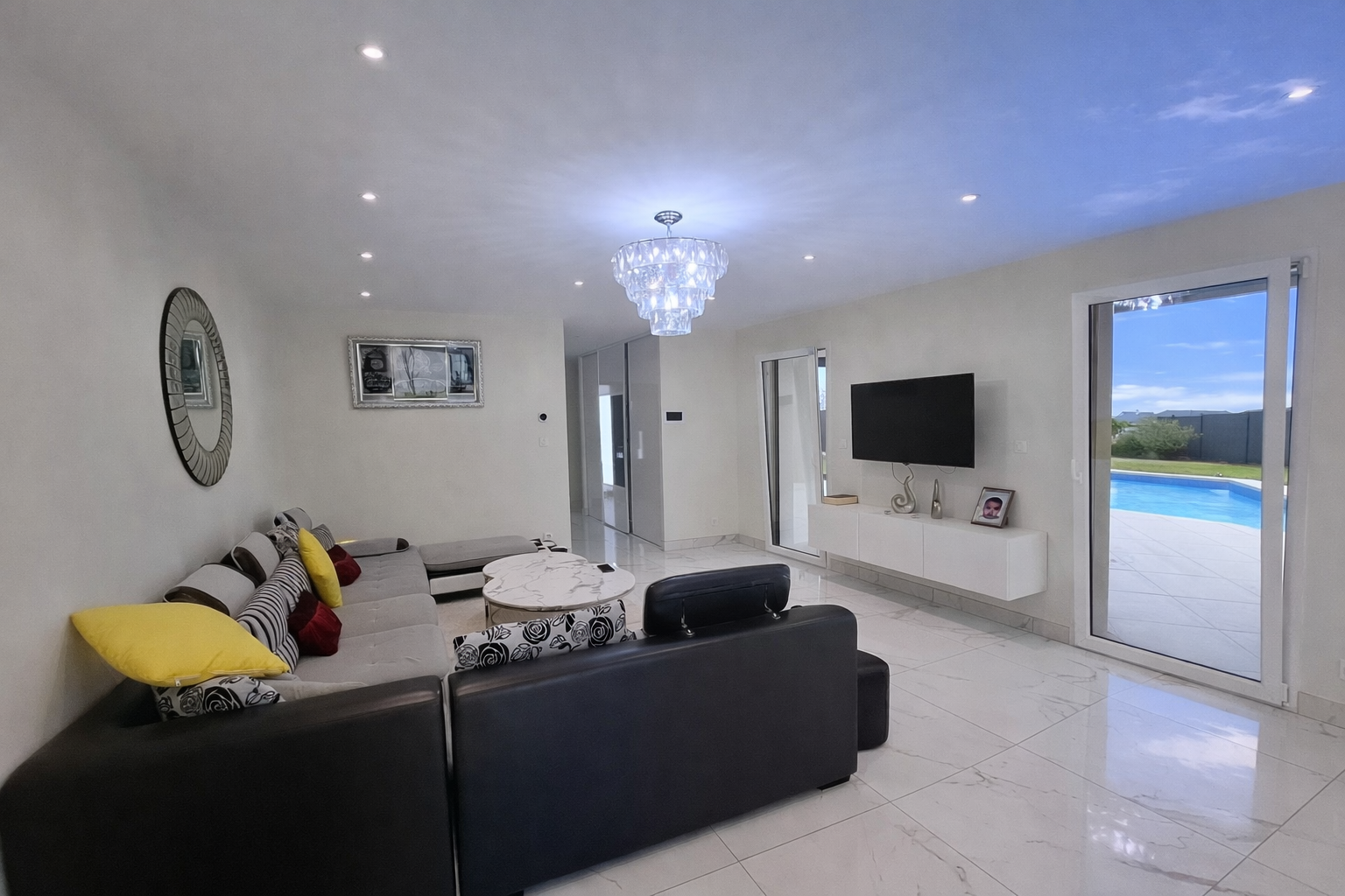 Maison de 2024 : pompe à chaleur, climatisation, adoucisseur d'eau, volets électriques, fenêtres en aluminium.
