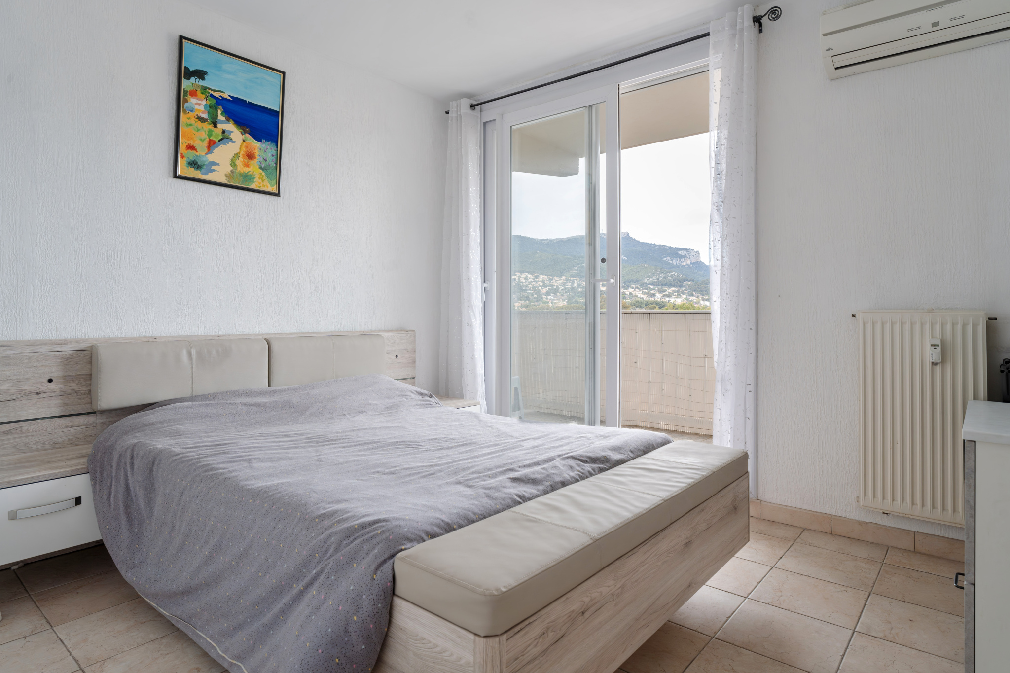 Vous apprécierez particulièrement son balcon, accessible depuis la cuisine et deux chambres, offrant une vue dégagée sur les collines, au calme.