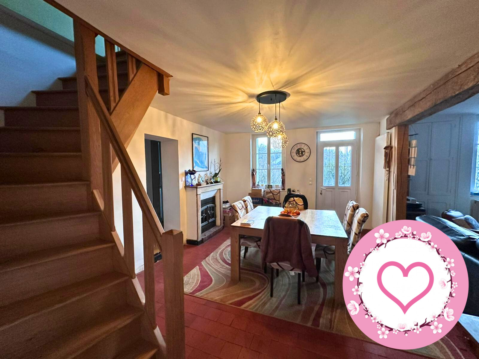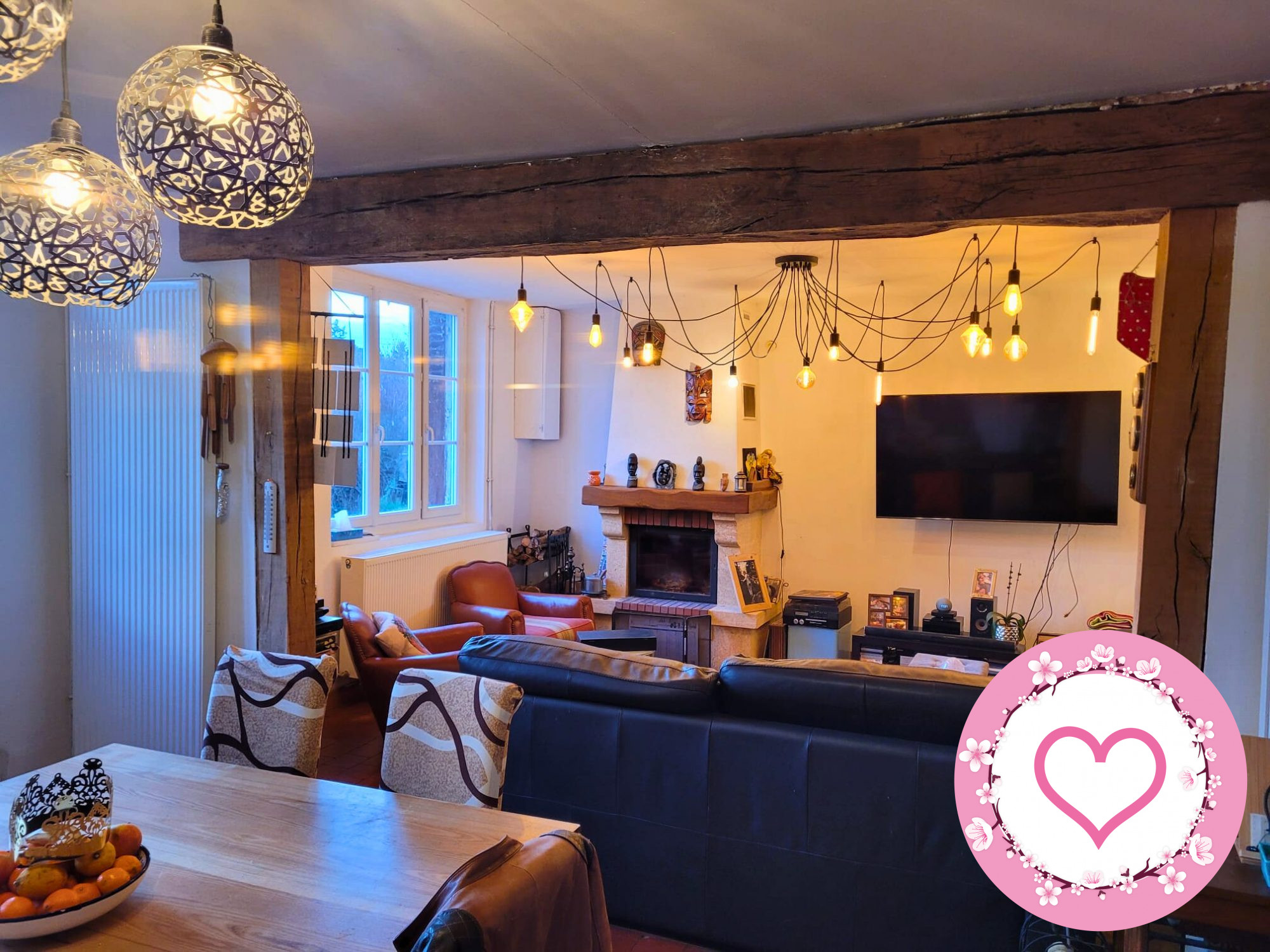 Mon coeur bat dans mon grand salon avec cheminée, où les soirées s'étirent au coin du feu. Ma cuisine cosy invite aux petits plats partagés et aux moments simples. Et pour le côté pratique, je cache aussi un beau cellier.