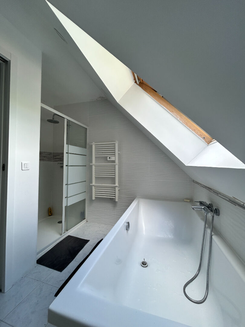 À l'étage : quatre chambres, un bureau, une salle de bains avec douche et un WC indépendant, idéal pour une grande famille.