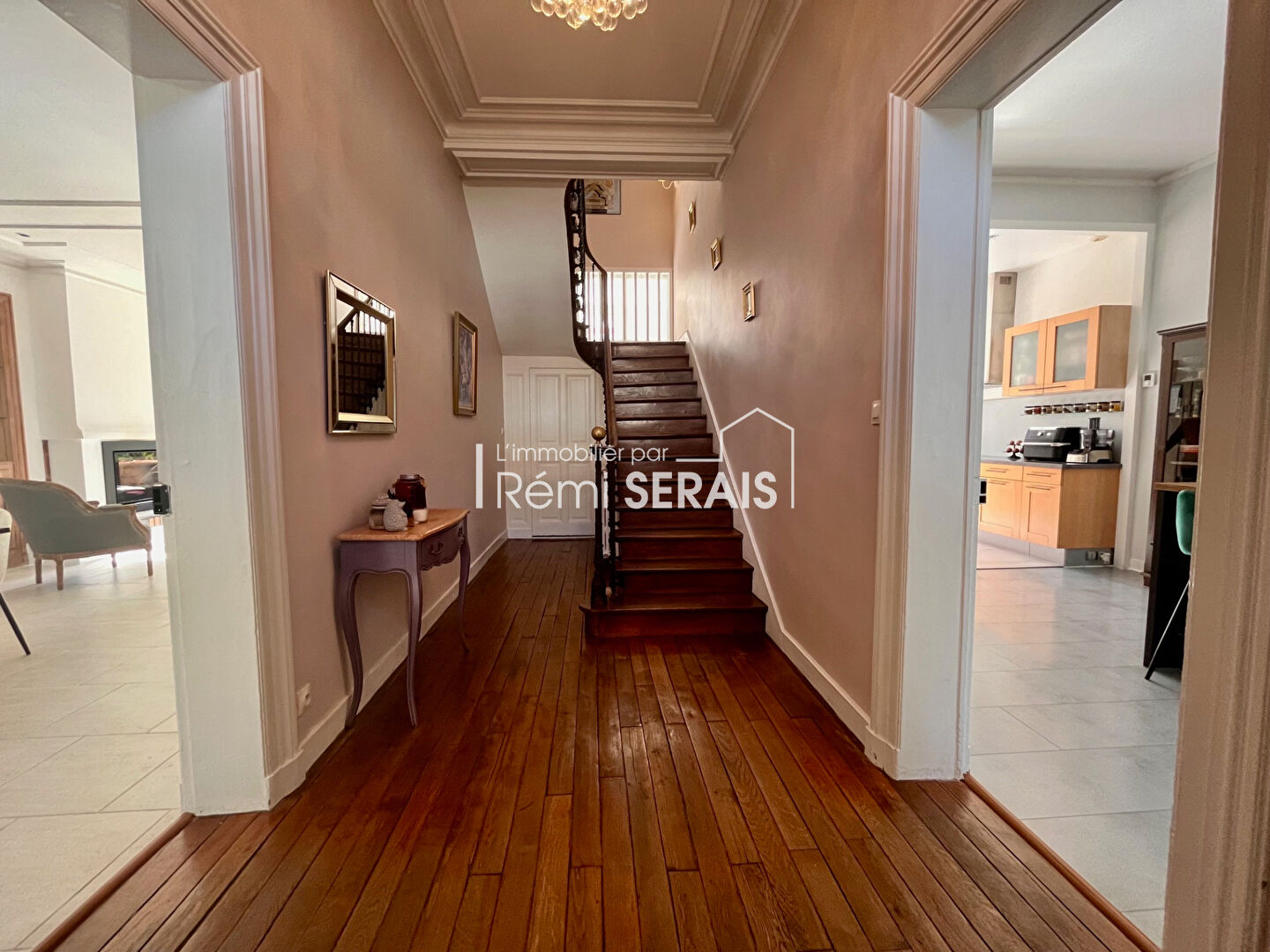 Au rez-de-chaussée, vous découvrirez un vaste salon-séjour baigné de lumière, agrémenté d'un insert, parfait pour des moments chaleureux en famille. Une belle cuisine équipée ouverte sur l'espace de vie complète cet ensemble convivial.
