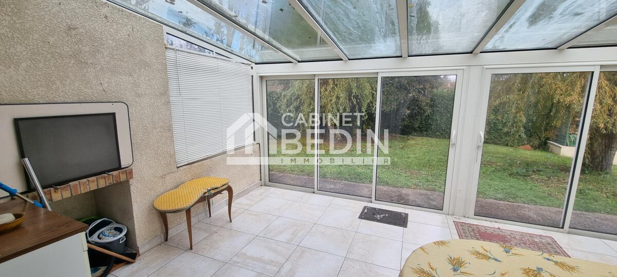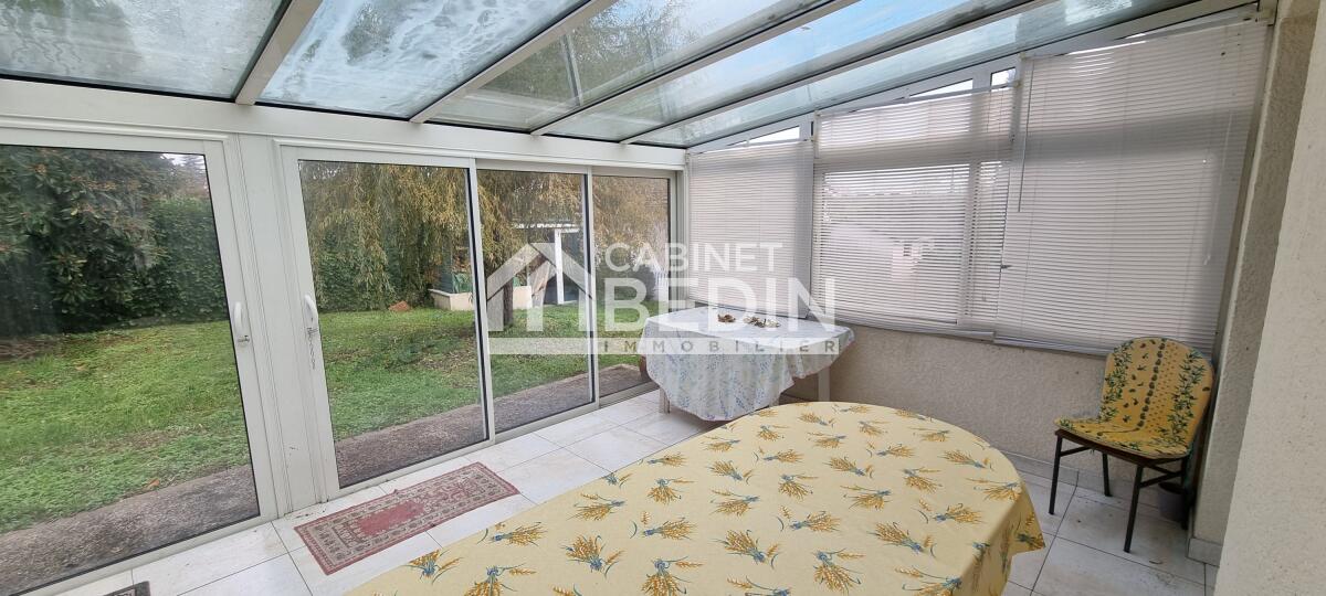 Exclusivité CABINET BEDIN - ROAILLAN. Maison composée d' un séjour Sud avec cuisine us aménagée, véranda climatisée, trois chambres équipées de placard, salle d' eau et un grand sous-sol total idéal pour du rangement ou des voitures à l' abri. Un Garage indépendant bénéficiant d' un grand et haut volume complète ce bien non mitoyen sur près de 1000m² de terrain clos au calme et bien arboré. École et commerces du bourg de Roaillan directement accessibles à pied.