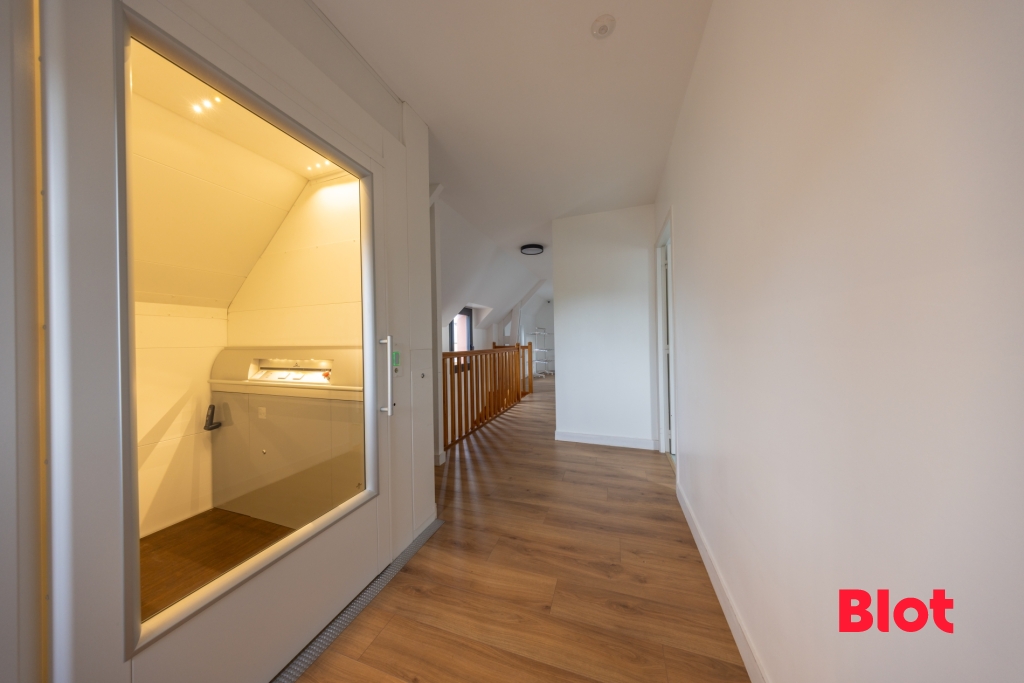 L'étage, accessible par ascenseur, propose un espace mezzanine faisant office de bureau, trois belles chambres, une salle de bains et un WC indépendant.