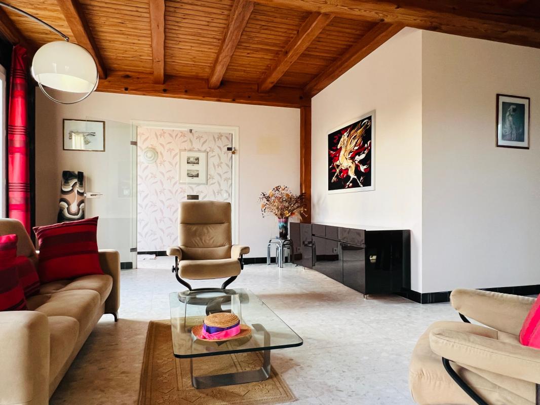 Vous découvrirez un séjour traversant, lumineux, avec cheminée, de près de 40m2 orienté Sud.