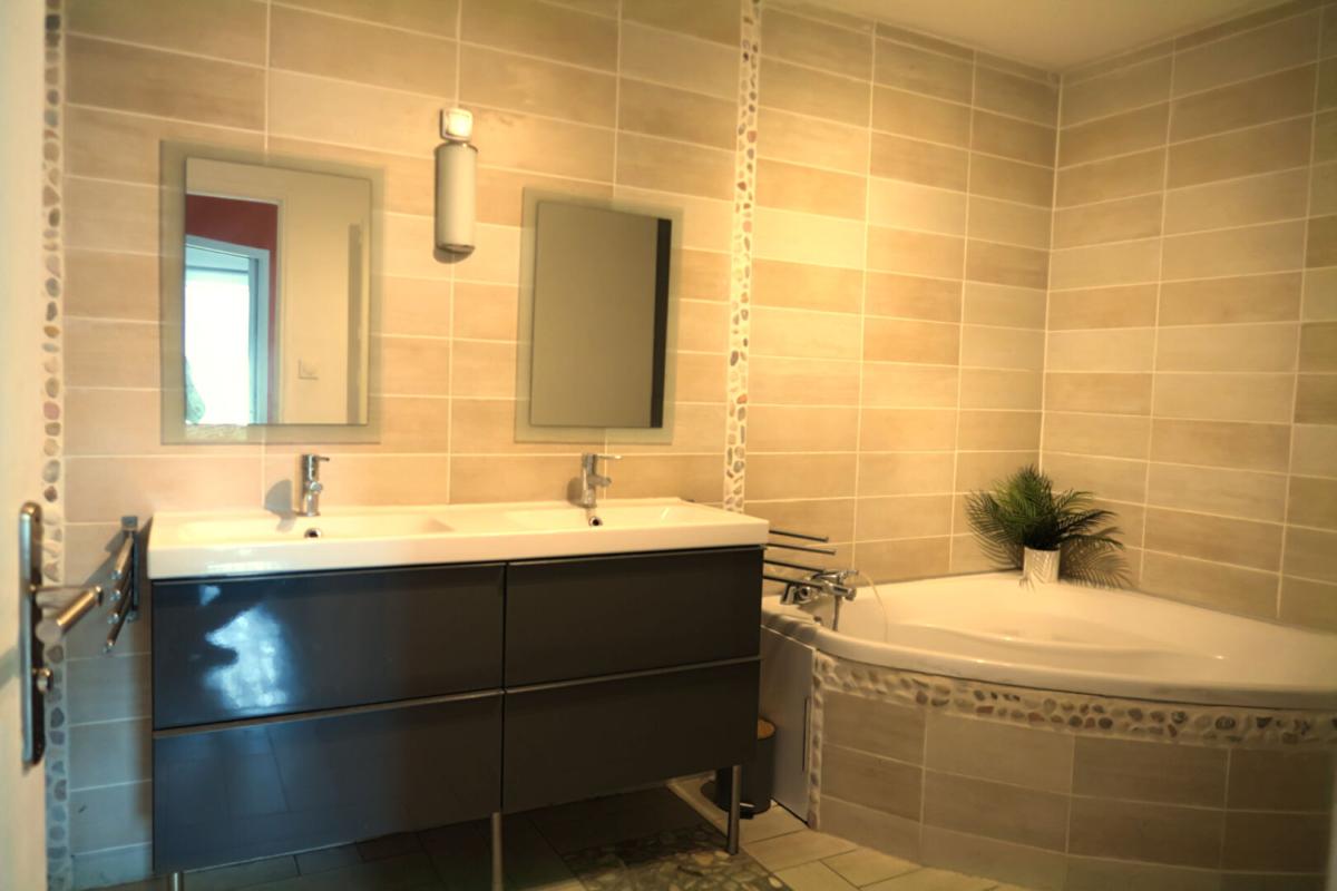 A l'étage, la maison dispose d'une belle suite parentale avec une salle de bains indépendante, de quatre chambres et d'un WC indépendant également.