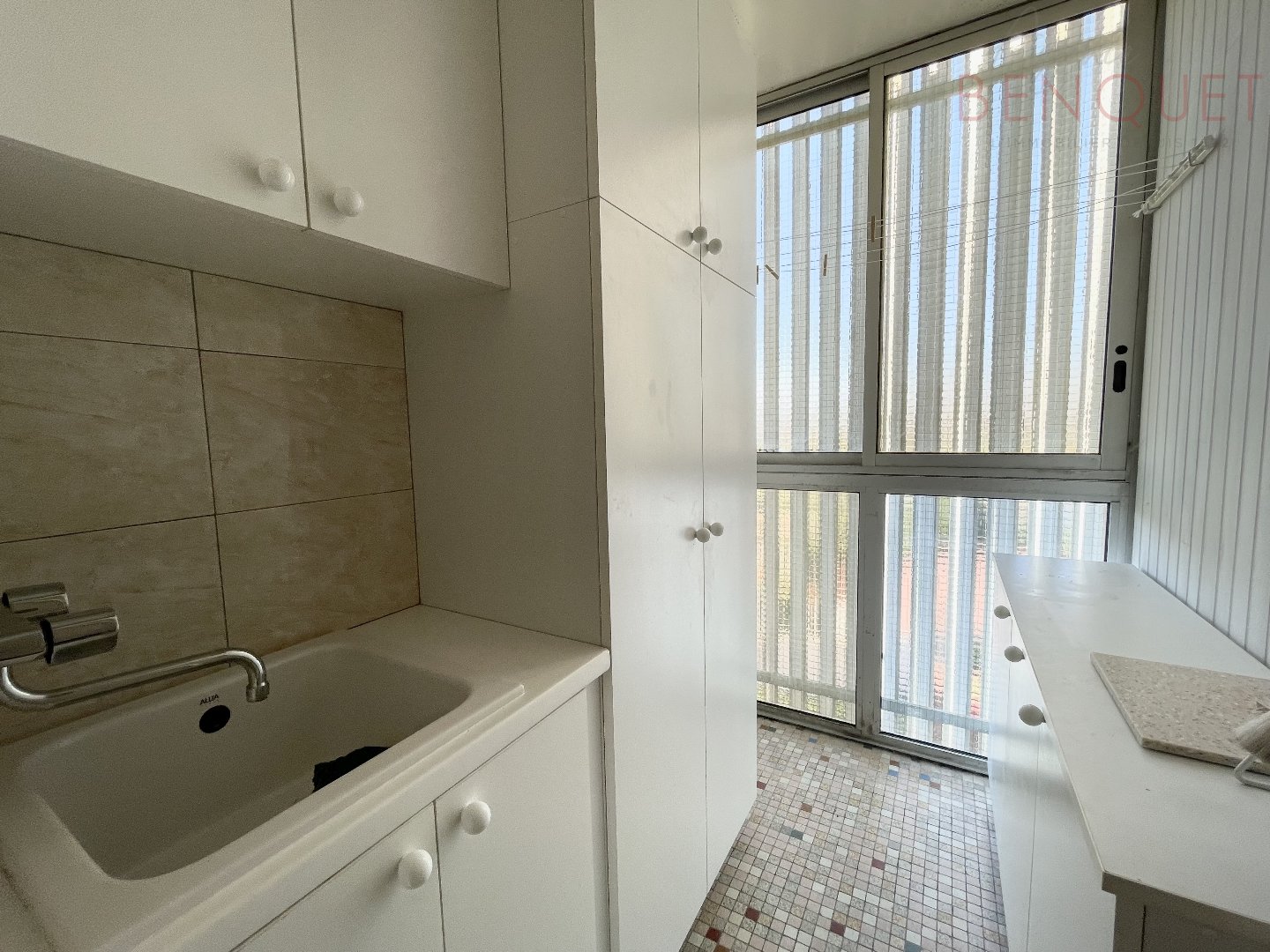 Il se compose d'une entrée avec placard desservant une cuisine séparée, aménagée et équipée, un cellier / séchoir, un salon-séjour ainsi qu'un couloir menant à une salle de bains, deux chambres dont une avec placard, et des WC séparés.