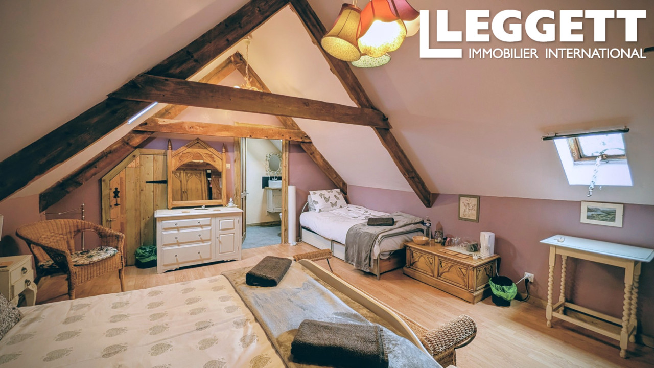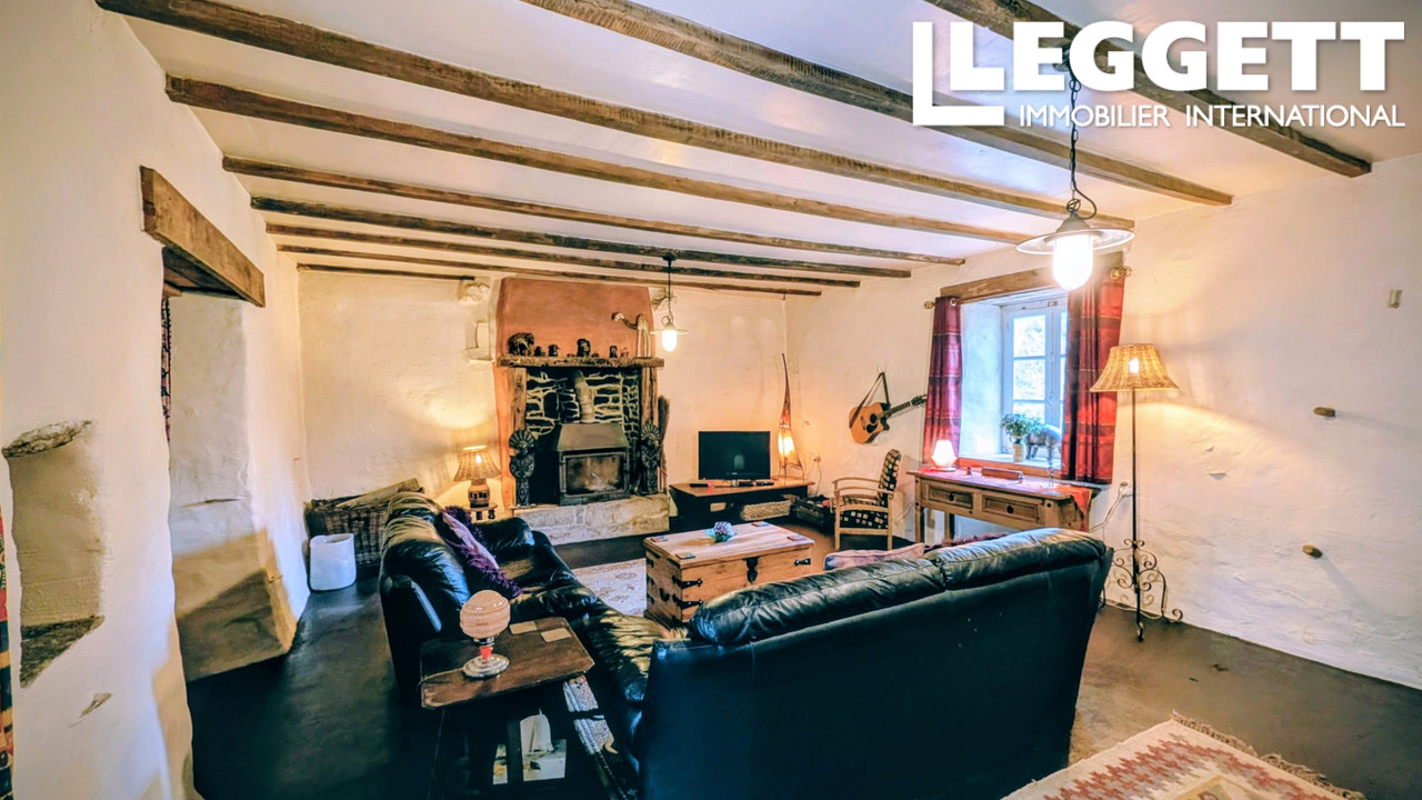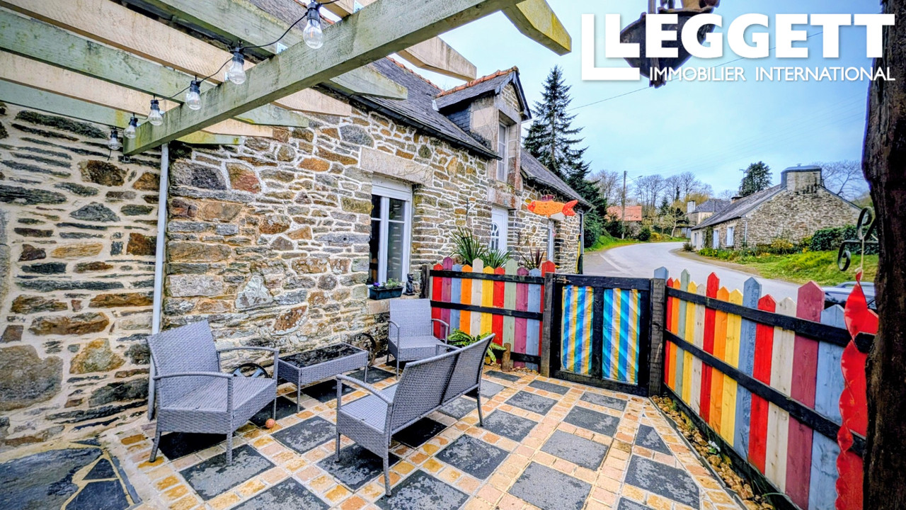 A43499JW22 - Charmante propriété rurale située dans un village en Bretagne, à proximité des forêts, du lac de Guerlédan et des commodités locales. Cette maison en pierre de caractère comprend 2 chambres et 2 salles de bains, ainsi qu'une cour fermée à l'avant et environ 673 m² de terrain attenant.
