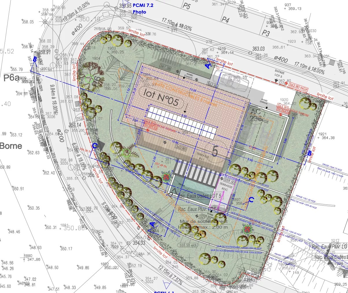 NICE/FALICON, dans un domaine de grand standing, VUE DOMINANTE MER pour ce terrain de 594m2 avec permis de construire pour une villa d'une surface de plancher de 162m2, surface maximale autorisée de 225m2 (PC modificatif en cours). Garage, piscine.