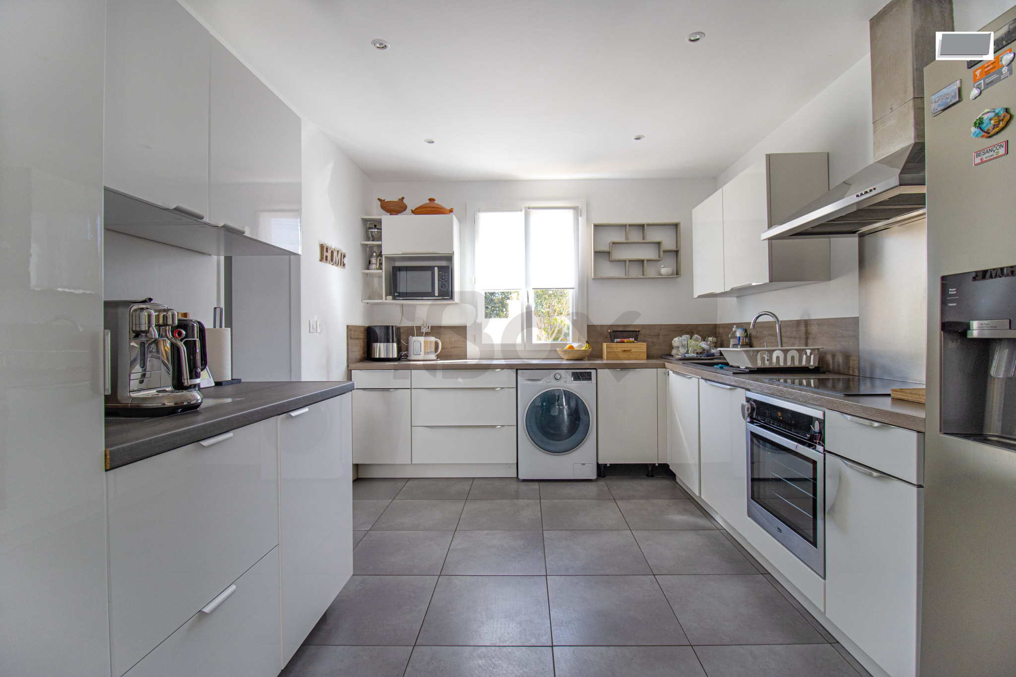 Au rez-de-chaussée, vous profiterez d'un séjour lumineux avec cuisine équipée ouverte sur la salle à manger, ainsi qu'un WC.