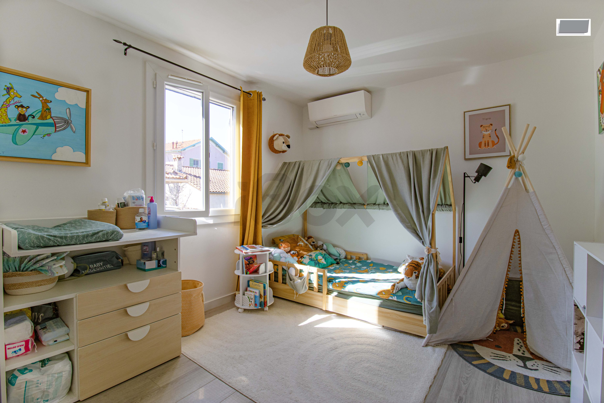 À l'étage, l'espace nuit se compose de trois chambres climatisées et d'une salle d'eau avec WC.