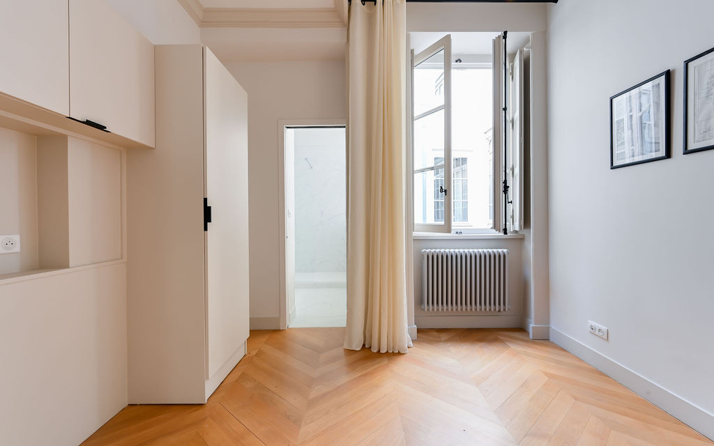 Lyon 2ème - coeur Presqu'île / Cordeliers. Dans un bel immeuble bourgeois, en étage élevé avec ascenseur, coup de coeur pour ce charmant 3 pièces traversant Est et Ouest. Rénové par architecte avec des matériaux de grande qualité, il vous séduira par son charme de l'ancien préservé et ses prestations contemporaines. Il offre un séjour en parquet avec cheminée d'époque, une cuisine entièrement équipée avec son espace repas, deux chambres en parquet avec salle d'eau privative. Frais réduits. Idéal pied à terre lyonnais ou investissement patrimonial. Local à vélos.