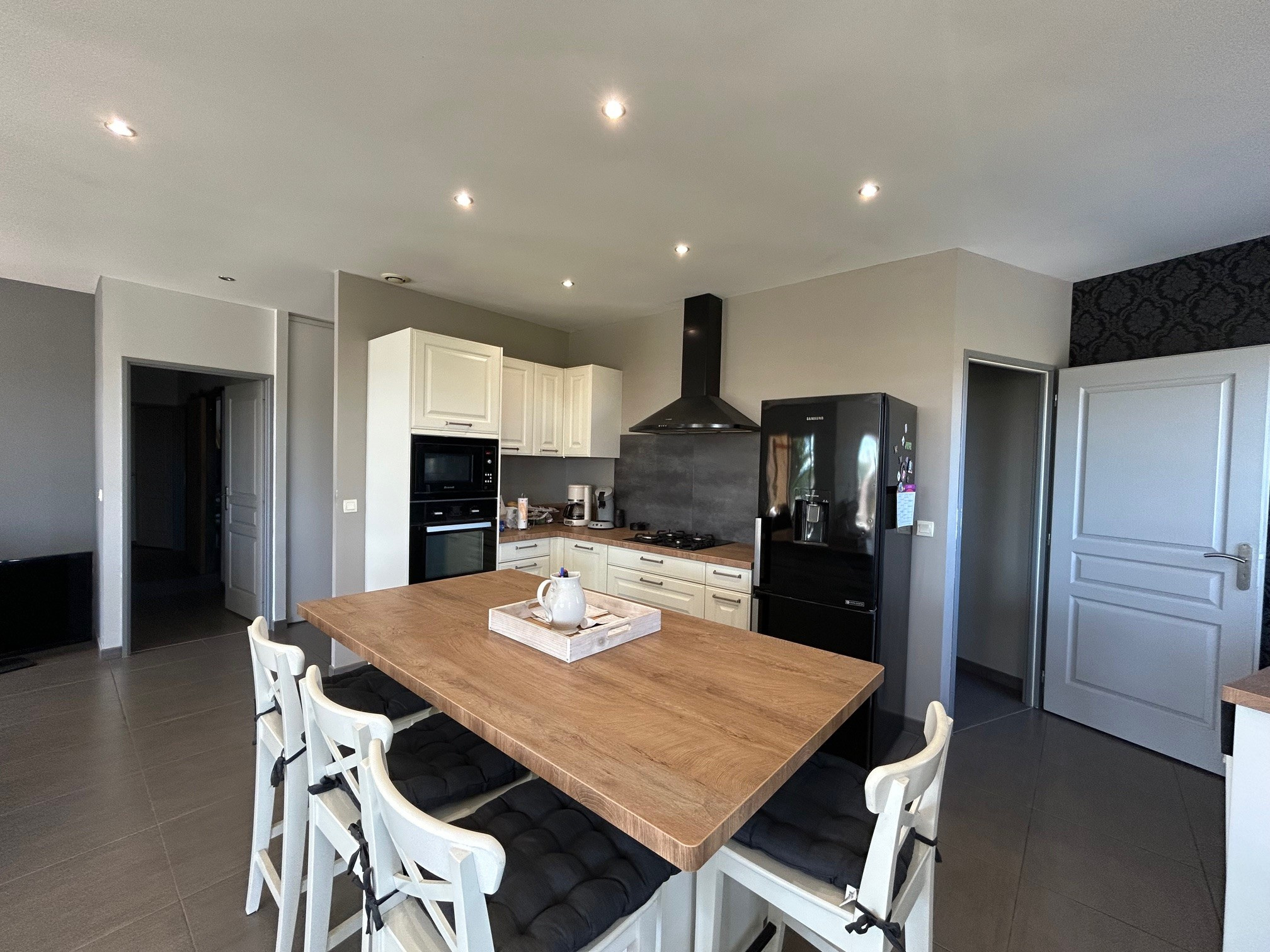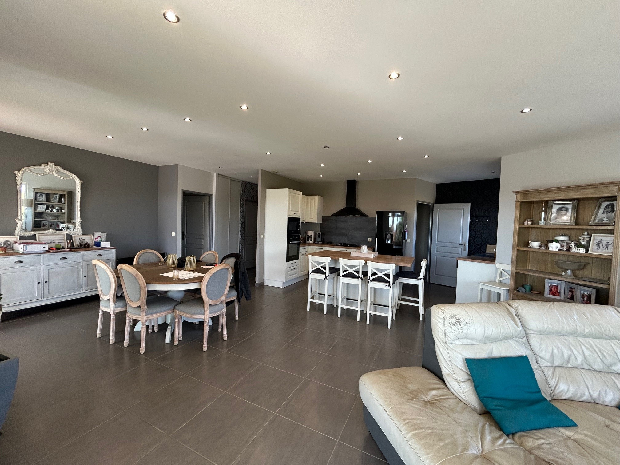 Villa plain pied d'environ 120 m2 habitables de type 4 avec 3 chambres sur une parcelle d'environ 2100 m2 avec un excélllent DPE grace à son chauffage au sol et sa bonne isolation.