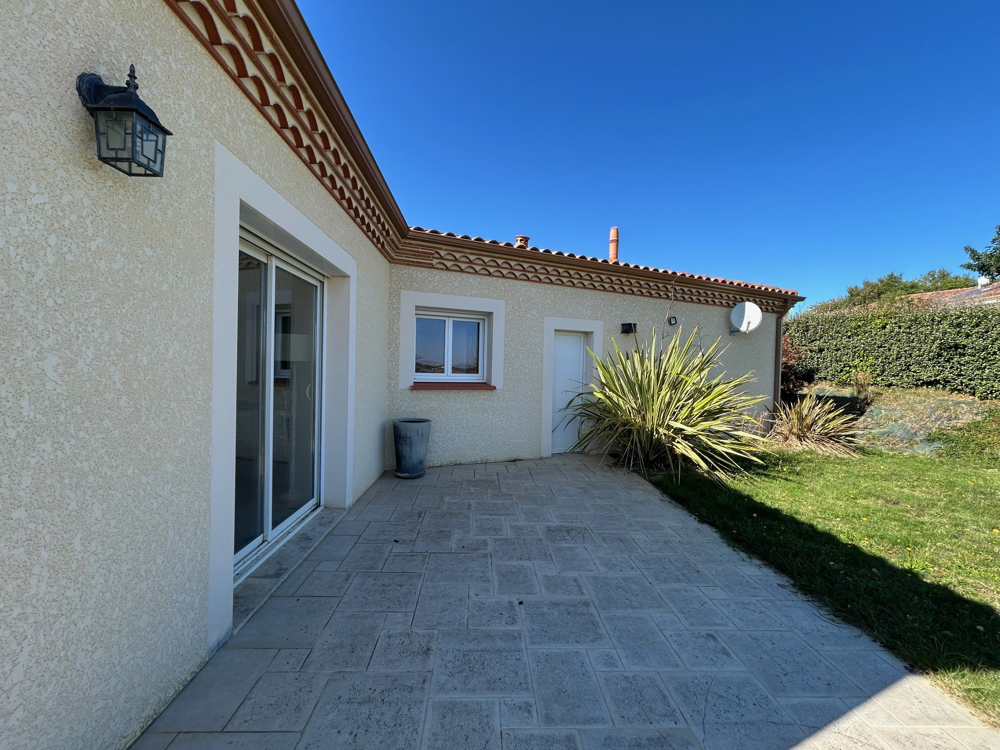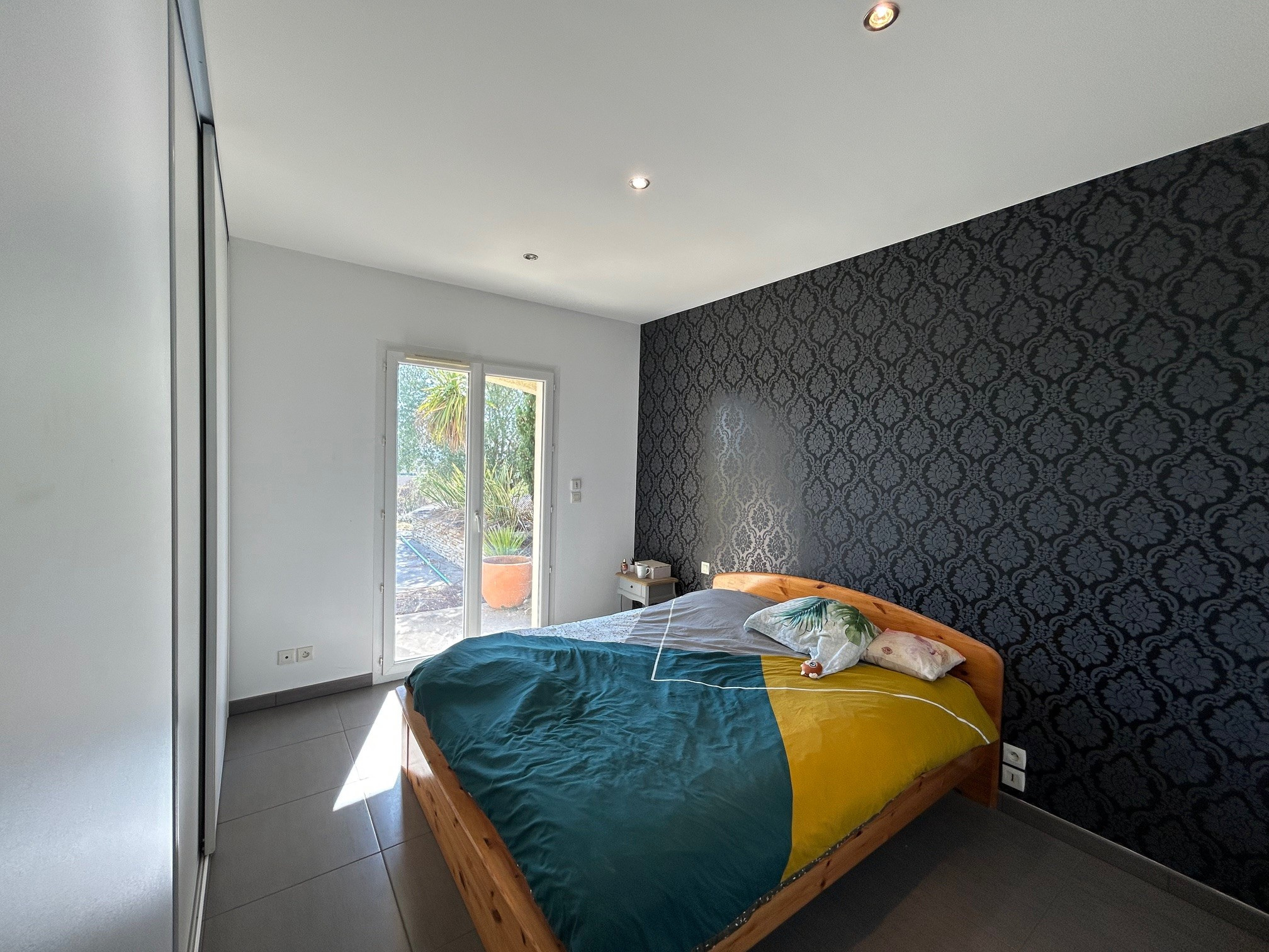 Elle possède de nombreux atouts : double garage isolé de 42 m2 avec 2 portes sectionnelles électriques , 2 terrasses en travertin dont une couverte coté piscine, belle végétalisation avec nombreux palmiers et tout à l'égout communal.