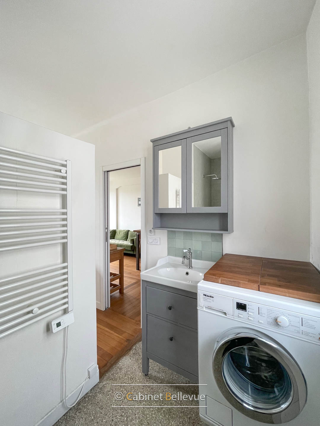 Meudon Val Fleury. Au 5ème étage avec ascenseur d'un immeuble art-déco datant des années 30, appartement plein de cachet, sans vis-à-vis et très lumineux. Il vous offre un séjour avec cuisine US équipée, 2 grandes chambres, 2 salles d'eau avec leurs WC. Divers espaces de rangement. Double vitrage, chauffage et eau chaude collectifs. Une cave agrémente l'ensemble. Le RER C Val Fleury est à 200m. La ligne SNCF vers Paris Montparnasse est à 7mn à pied.