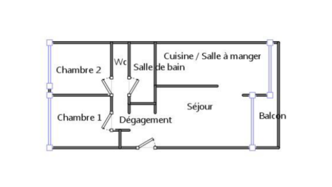 Le bien est composé d'un hall d'entrée avec placards donnant accès au séjour avec salle à manger et cuisine semi-ouverte aménagée et balcon, un dégagement mène au coin nuit qui comporte deux chambres, une salle d'eau et un wc.