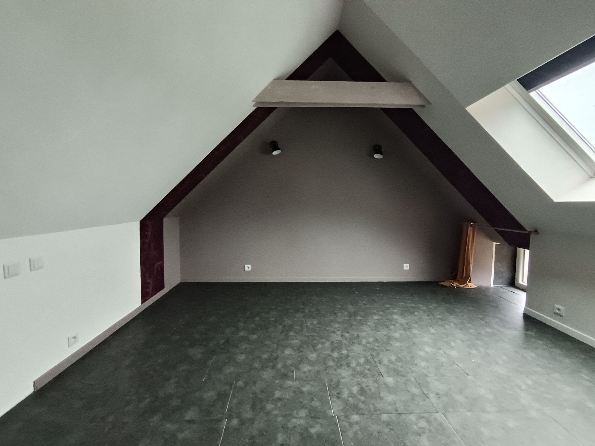 Rez-de-chaussée : Pièce de vie lumineuse avec espace cuisine, salle d'eau et WC.