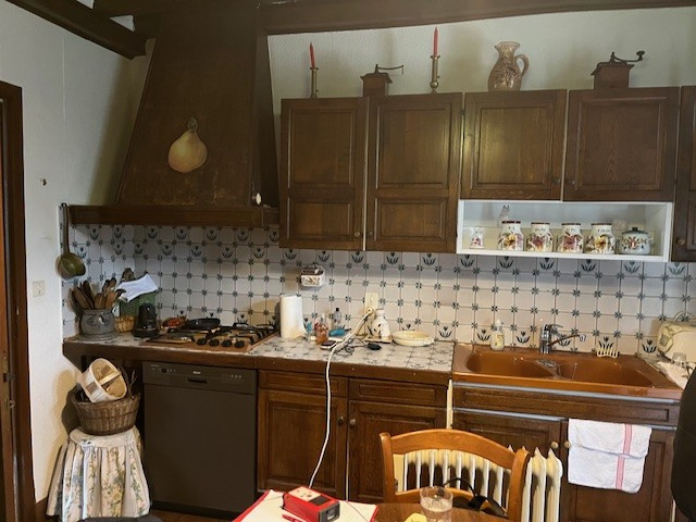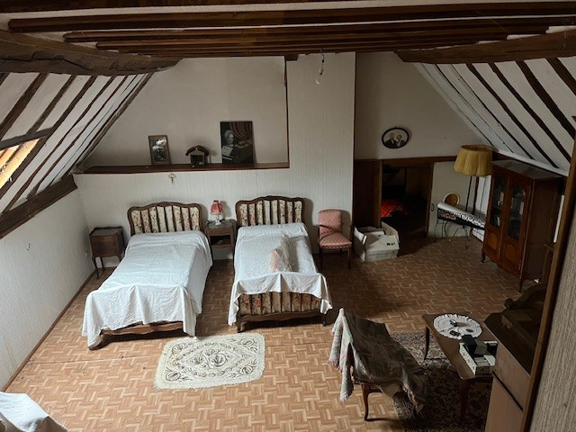 La seconde partie de l'ensemble se compose d'une habitation d'environ 62m2 intégrée à une grande grange à pans de bois et briques, avec grenier au-dessus, comprenant également une pièce équipée d'un lavabo, ainsi qu'une cave et un appentis. L'habitation se distribue ainsi : une entrée, une cuisine, un séjour, un cellier, une chambre, une salle de bains et un WC. Cette partie habitation est actuellement louée 419EUR / mois).