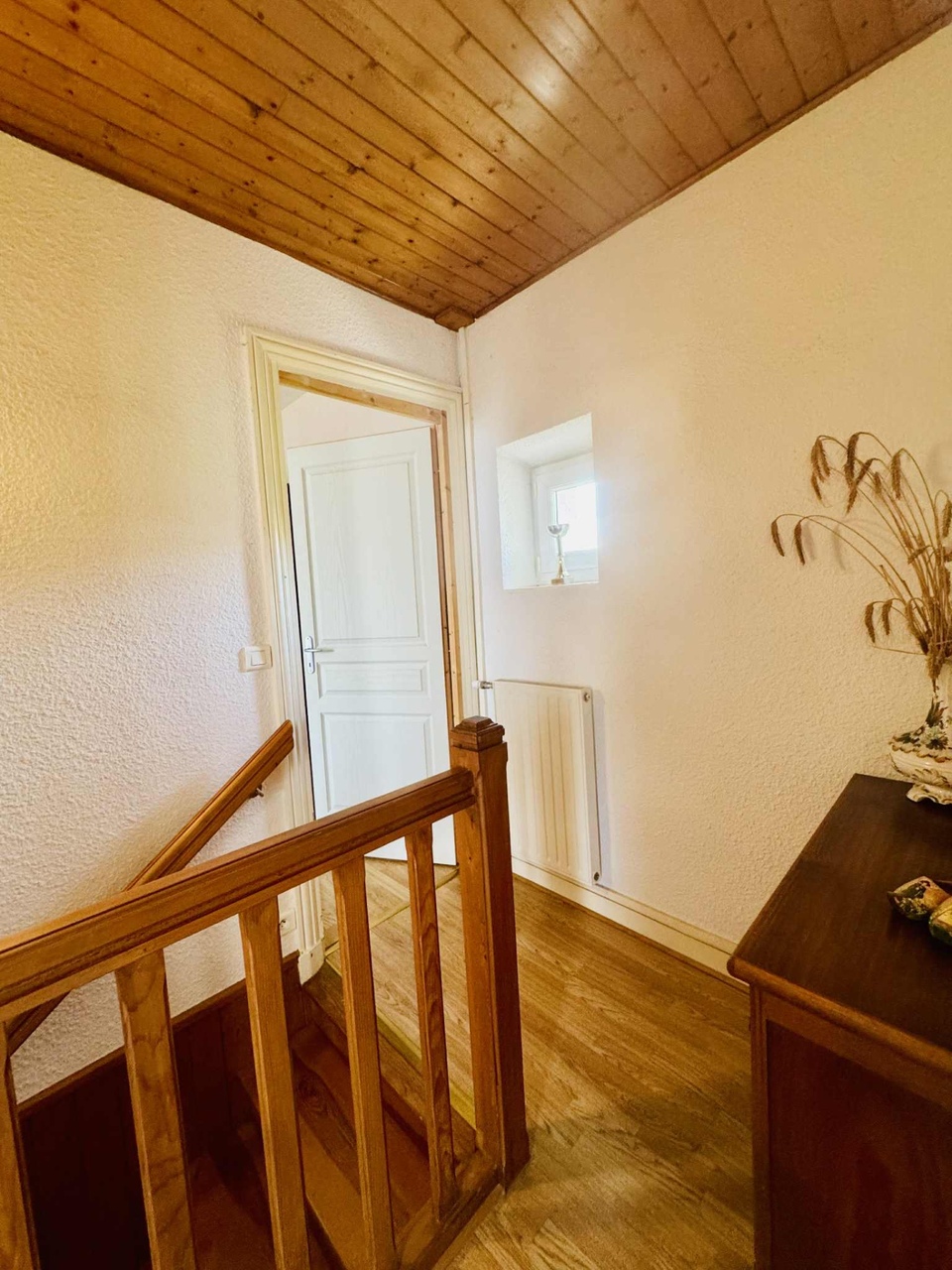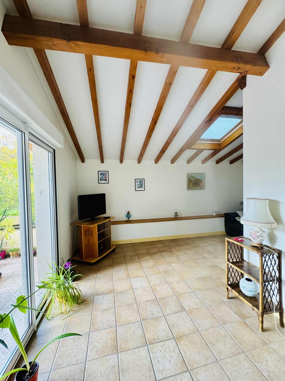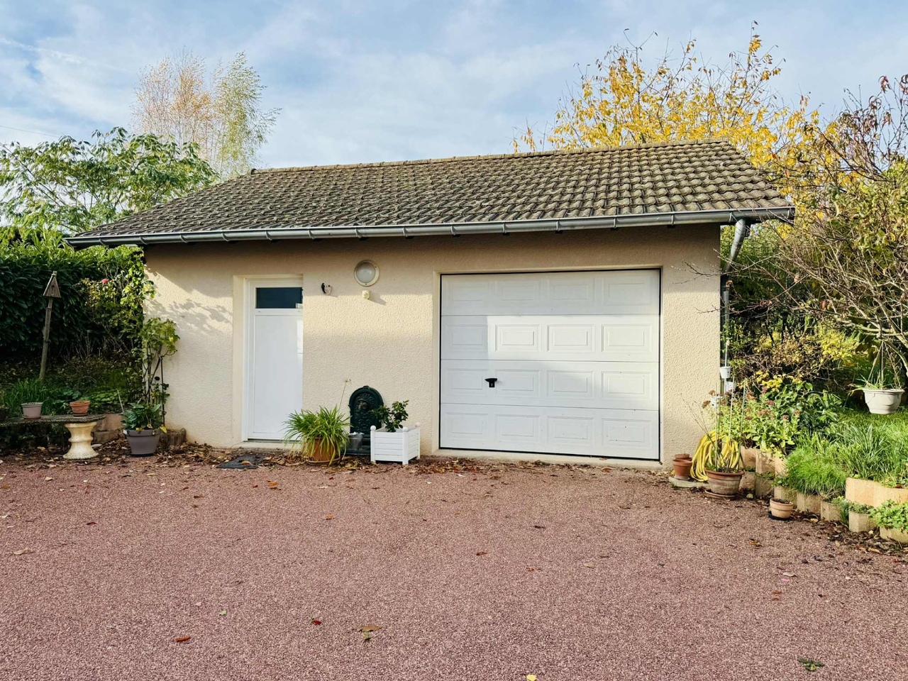 La maison principale, libre d’occupation, offre de beaux volumes répartis sur deux niveaux. Le rez-de-chaussée comprend une cuisine conviviale, une salle à manger, un salon, un coin bureau, une salle d’eau et des toilettes indépendantes. À l’étage, trois chambres composent l’espace nuit. Une grande terrasse de plain-pied permet de profiter pleinement du jardin. Un bâtiment indépendant d’environ 50 m² abrite un garage avec porte sectionnelle automatique, un atelier et une cave alimentée en eau et en électricité. Le chauffage central est assuré par une chaudière au gaz de ville avec radiateurs.