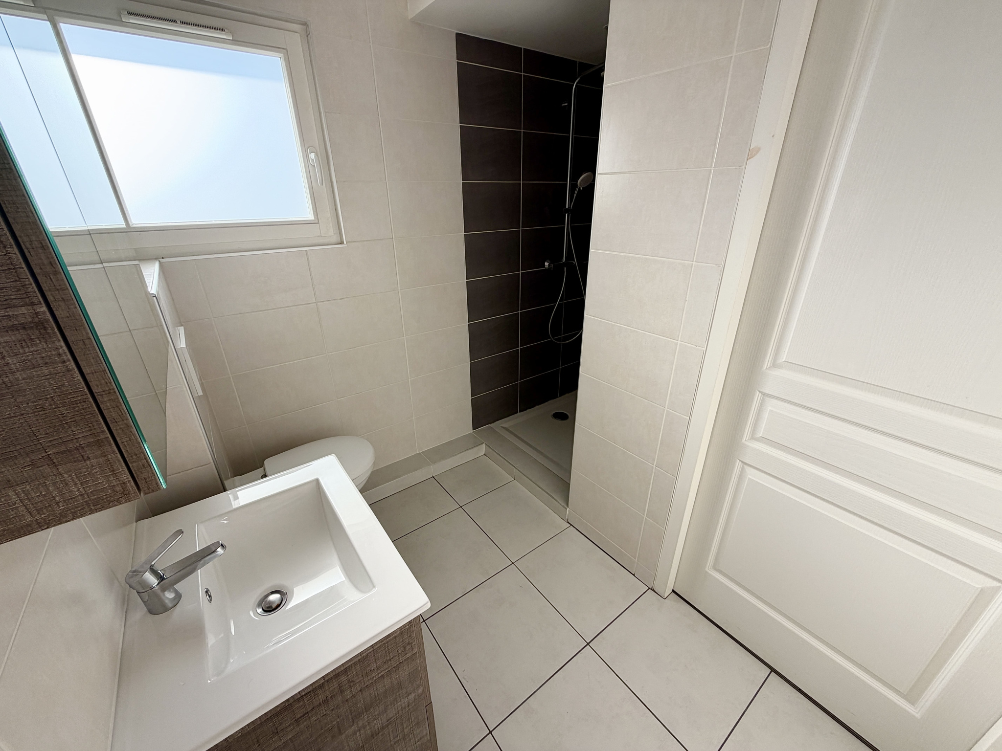 Comprenant une entrée avec placard, une grande cuisine équipée ouverte sur un vaste séjour de 27m2 donnant accès à une belle terrasse avec son exposition SUD-OUEST, une chambre avec placard et une salle d'eau avec WC.