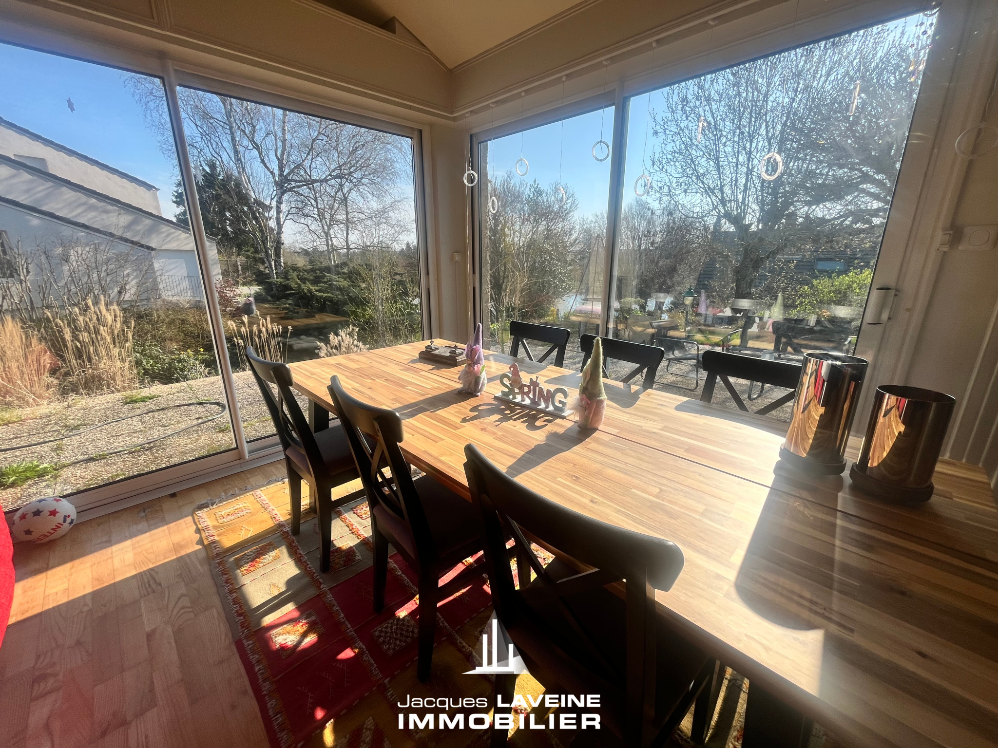 EXCLUSIVITÉ JLI! Coup de coeur assuré pour cette très jolie maison en parfait état située au calme en impasse à proximité de toutes les commodités.Elle offre une très belle vue dégagée, distribution en demi-niveaux, une entrée, une cuisine équipée moderne avec espace repas et cellier, une salle à manger, un salon-séjour avec poêle à bois et accès direct sur terrasse et jardin, 3 chambres dont une suite parentale avec salle de bains complète, un bureau. La maison est équipée d'une climatisation de DV PVC, d'une chaudière gaz. Elle dispose d'un sous-sol avec garage et d'un jardin arboré avec une très jolie vue sur la Seille.
