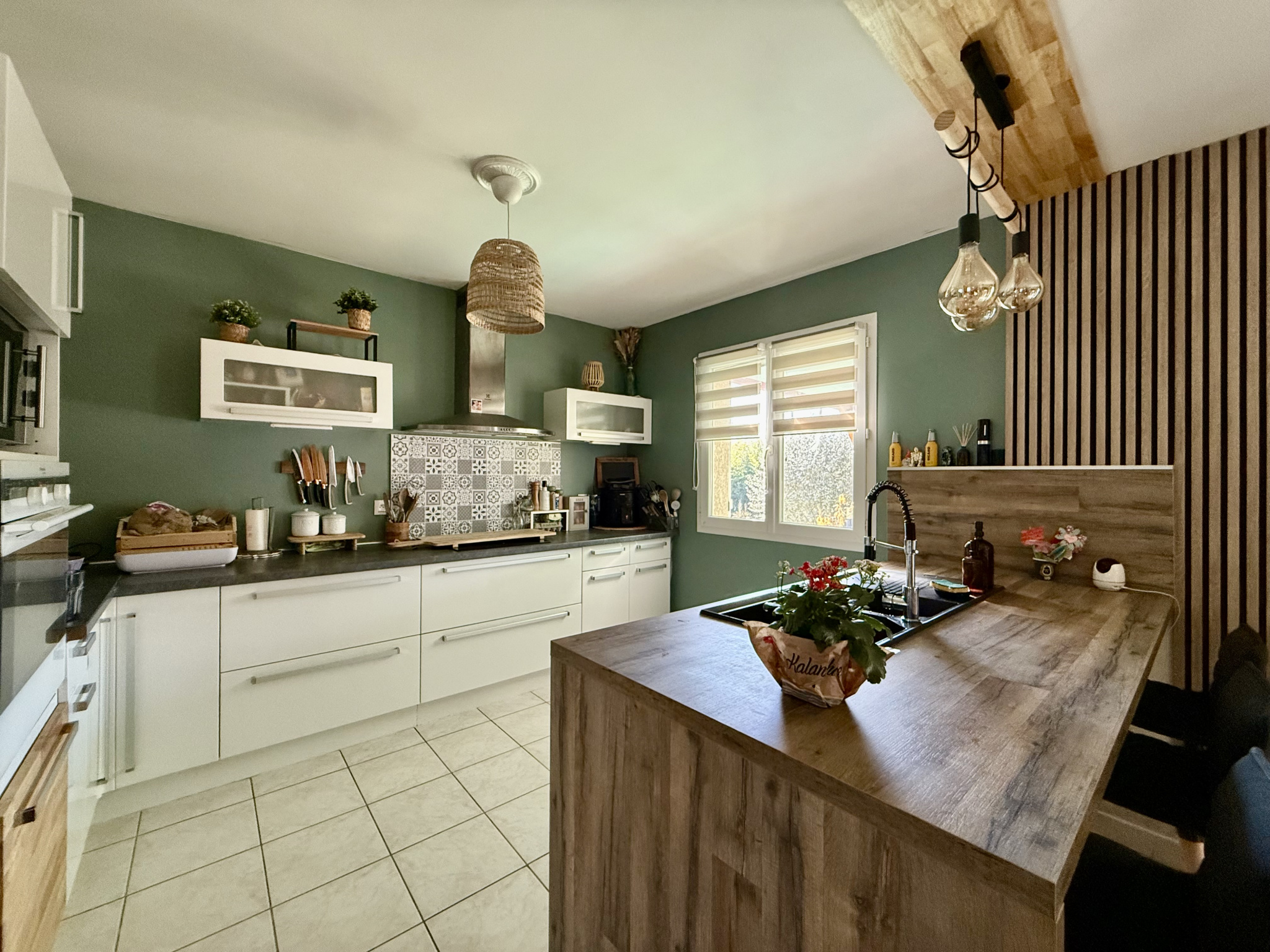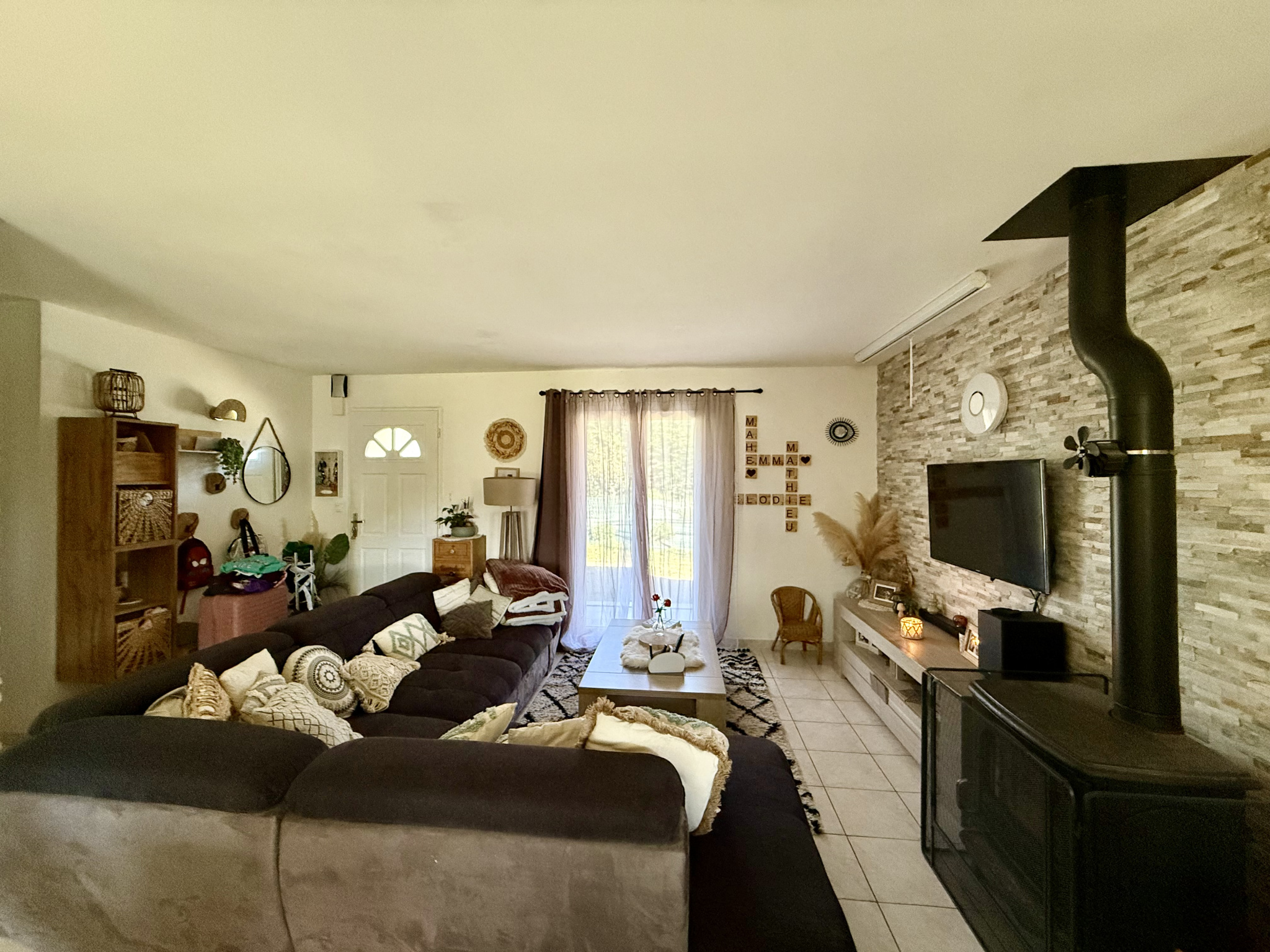 La maison s'organise autour d'une belle pièce de vie lumineuse d'environ 45 m2, avec cuisine ouverte, créant un espace convivial et chaleureux.
