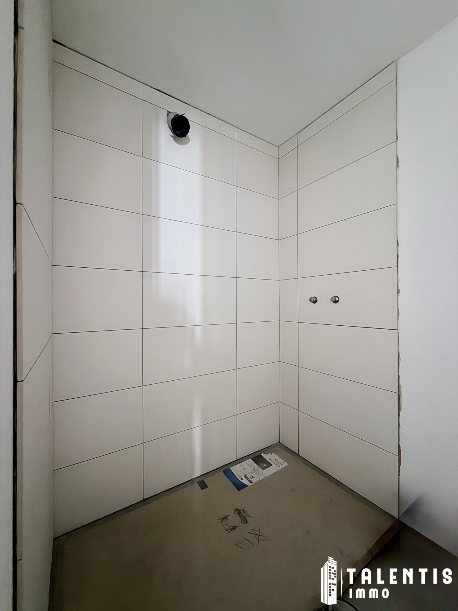 Une salle d'eau avec douche à l'italienne et emplacement lave-linge,
