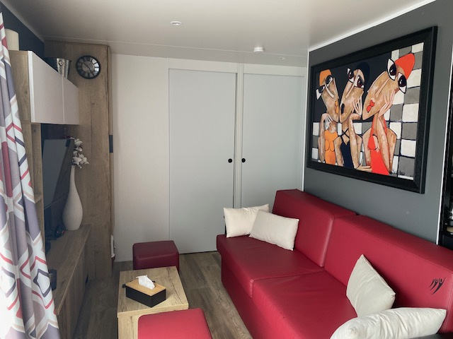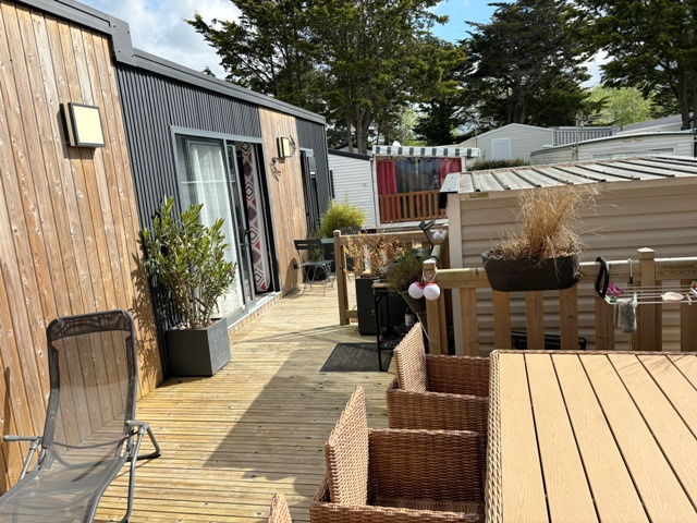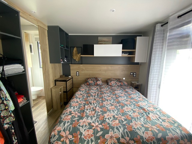 Dans camping tranquille en bord de mer, mobilhome de 2021 en parfait état et tout équipé comprenant une belle pièce de vie avec cuisine aménagée ouverte sur espace repas et coin salon, 3 chambres dont une suite parentale avec salle d'eau-WC, autre salle d'eau-WC.Surface de 42m2.- terrasse bois avec salon de jardin et barbecue- cabanon et emplacement voiture. Charges annuelles camping : 2580EUR comprenant eau , électricité et entretien des espaces verts. Parfait pour un pied-à-terre à 200m de la plage!