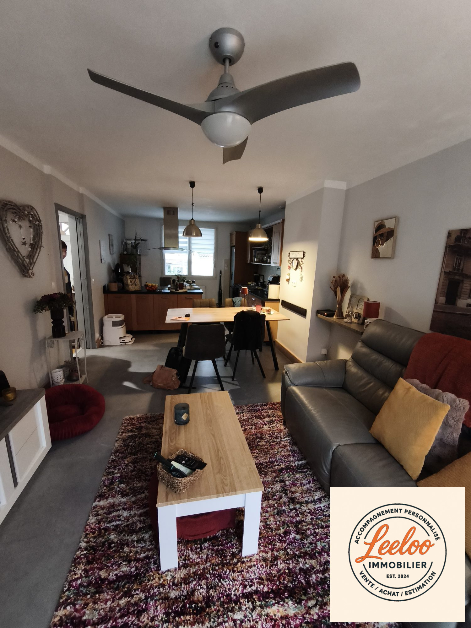 Une belle cuisine équipée s'ouvre sur un séjour lumineux.