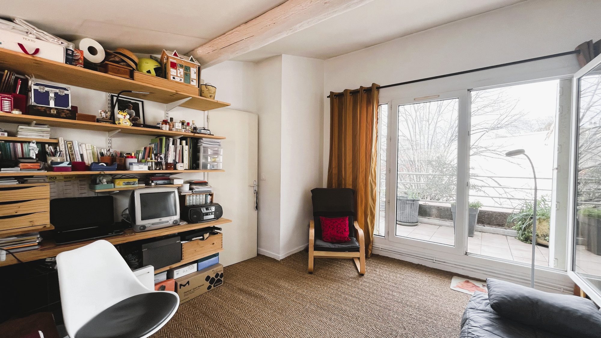 Au 2eme étage : vaste chambre avec accès à une terrasse de 10 m² offrant une vue dégagée sur les toits, salle d'eau.