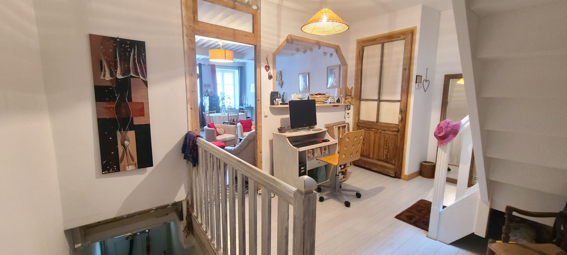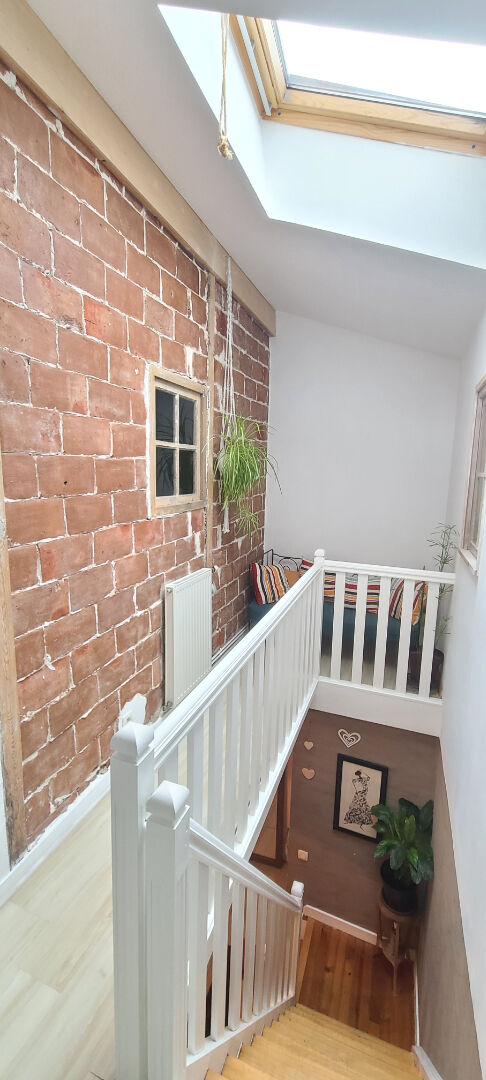 À l'étage, vous trouverez deux jolies chambres, une salle de bain avec WC, un espace lecture cocooning, ainsi qu'une pièce buanderie très pratique pour le quotidien.