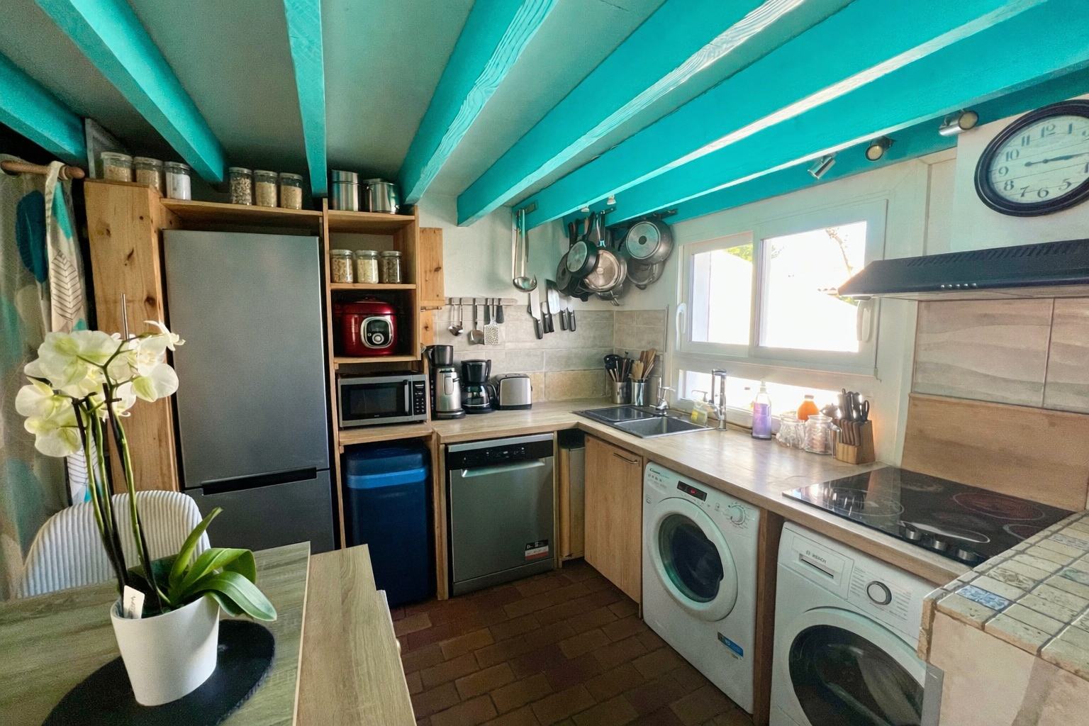 La maison se compose d'une pièce de vie avec une cuisine ouverte entièrement aménagée et équipée et plusieurs rangements.