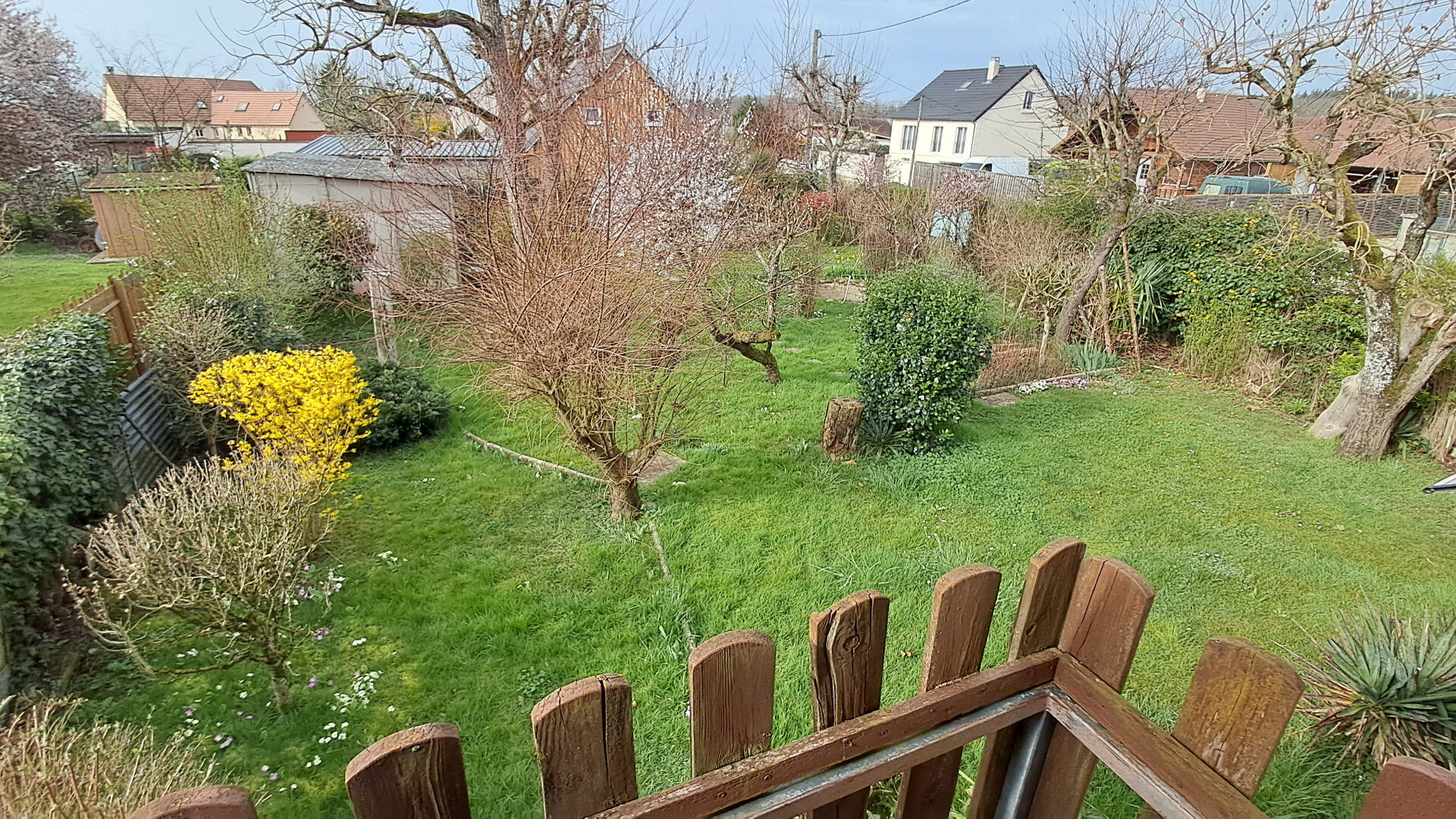 Garage fermé, dépendances et agréable jardin arboré de 760 m².
