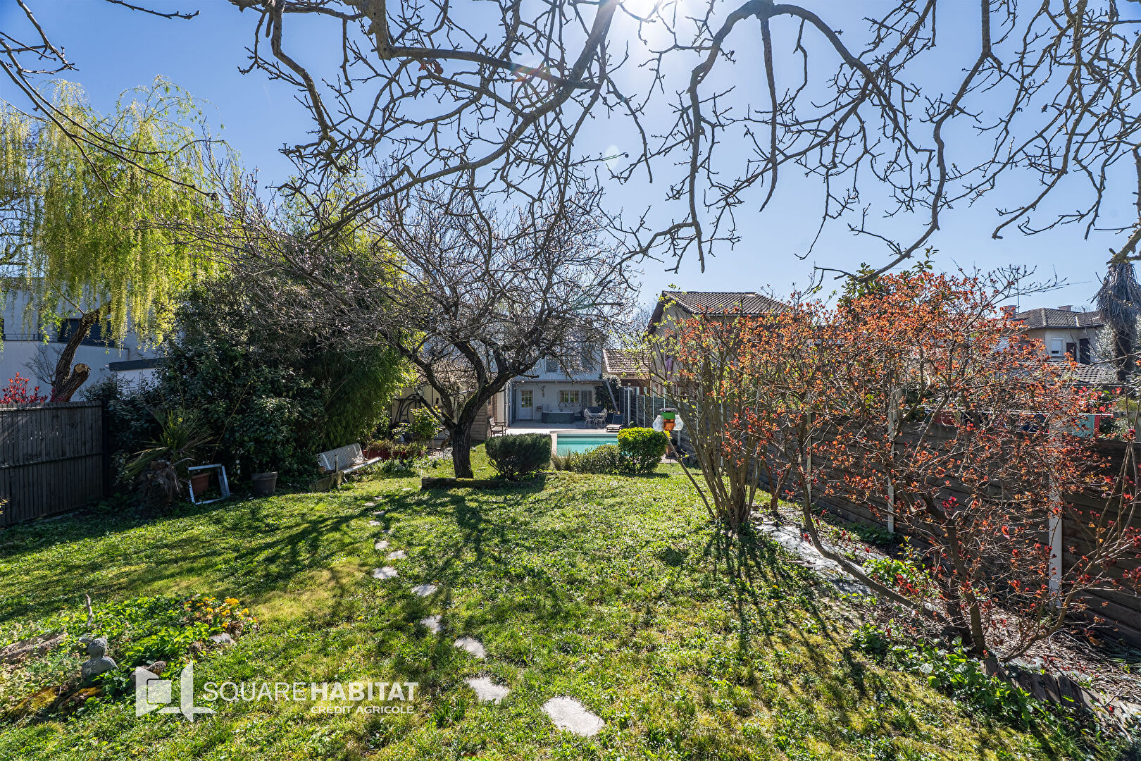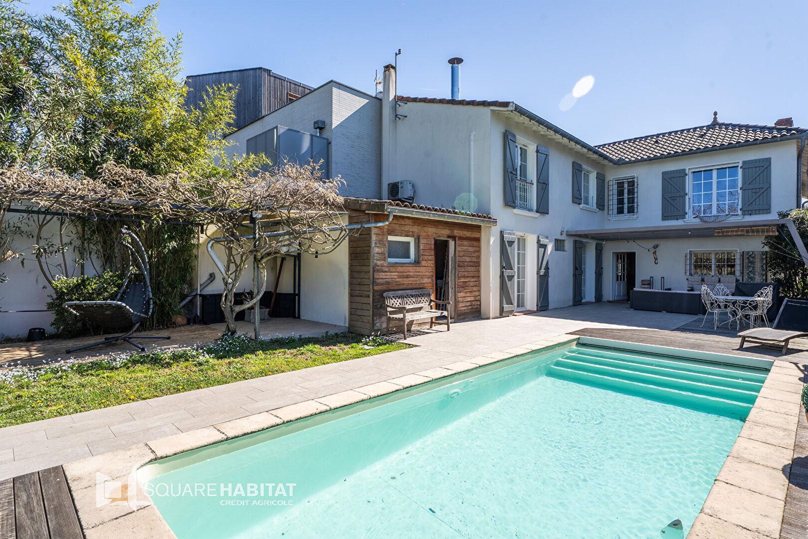 Magnifique jardin arboré sans vis à vis avec terrasse et piscine, une dépendance de jardin.