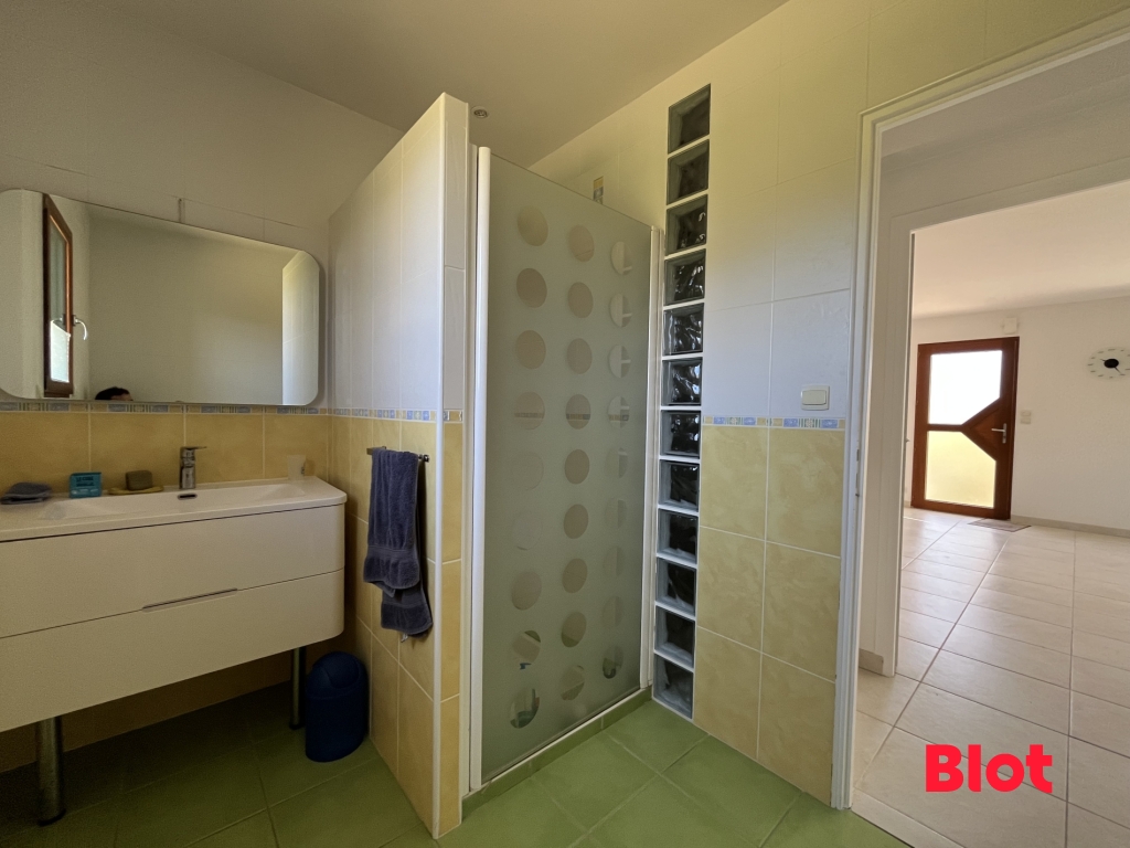 Cette maison spacieuse et lumineuse vous accueille dès l'entrée avec un vaste salon-séjour de 50 m², baigné de lumière, ouvert sur une cuisine moderne de 9 m², idéale pour partager des moments conviviaux. Le rez-de-chaussée propose également une chambre avec sa salle d'eau privative, offrant un véritable confort de plain-pied.