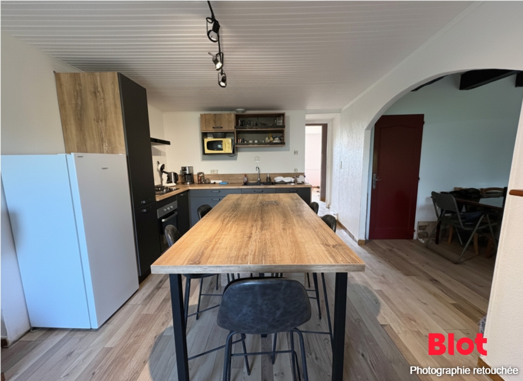 Au rez-de-chaussée, vous découvrirez une cuisine, un salon-séjour, une chambre, une salle de bains ainsi qu'une buanderie, formant un espace de vie pratique et agréable.
