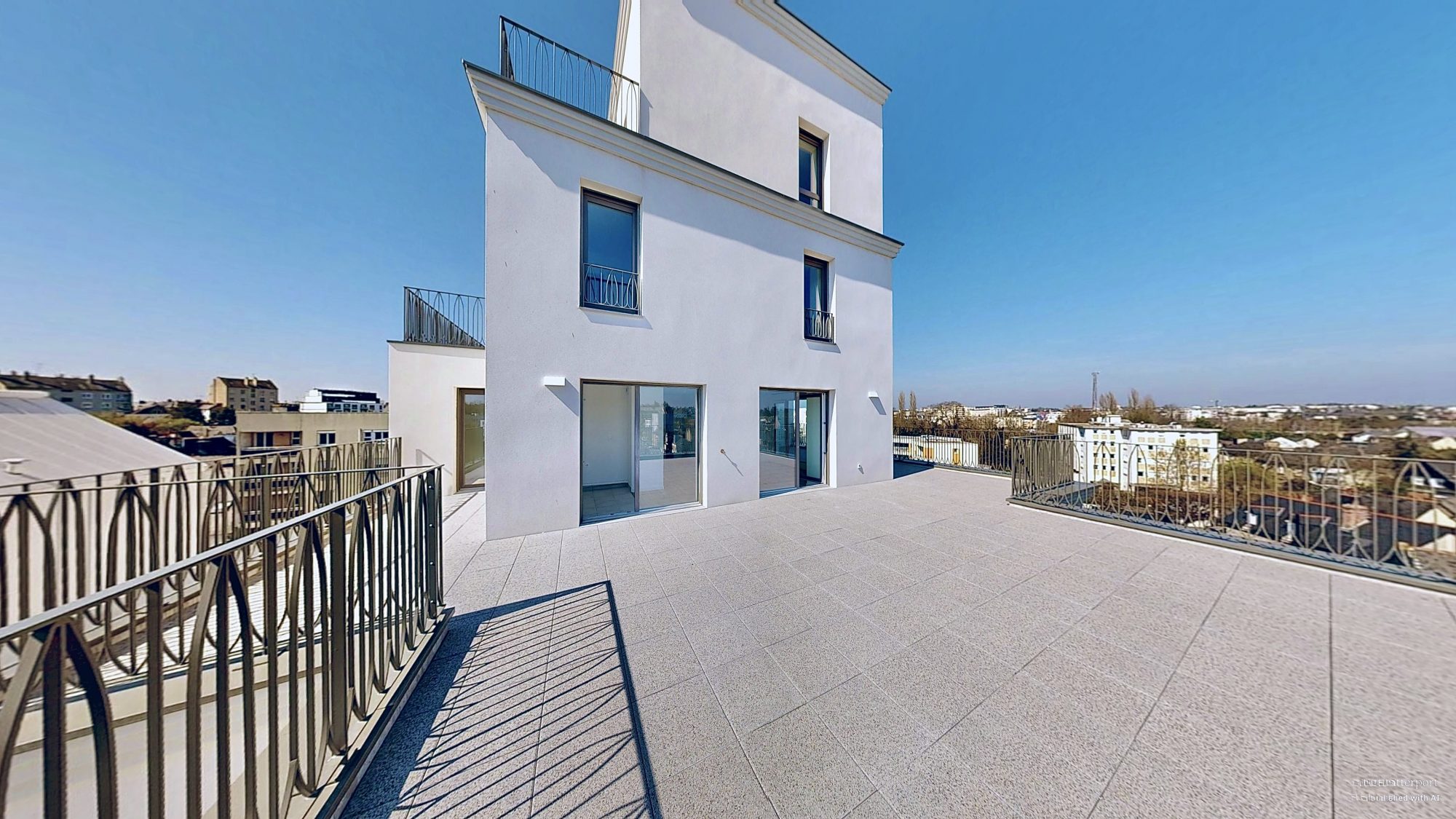 Ce T5 de 113m2 au 5è étage offre une magnifique terrasse panoramique de 102 exposée sud.