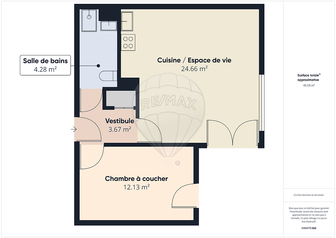<p>Cet appartement T2 de 45 m² se compose :</p>