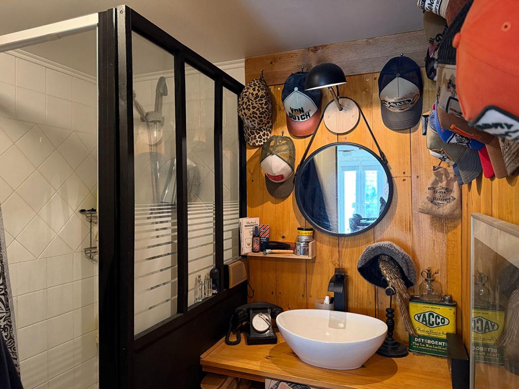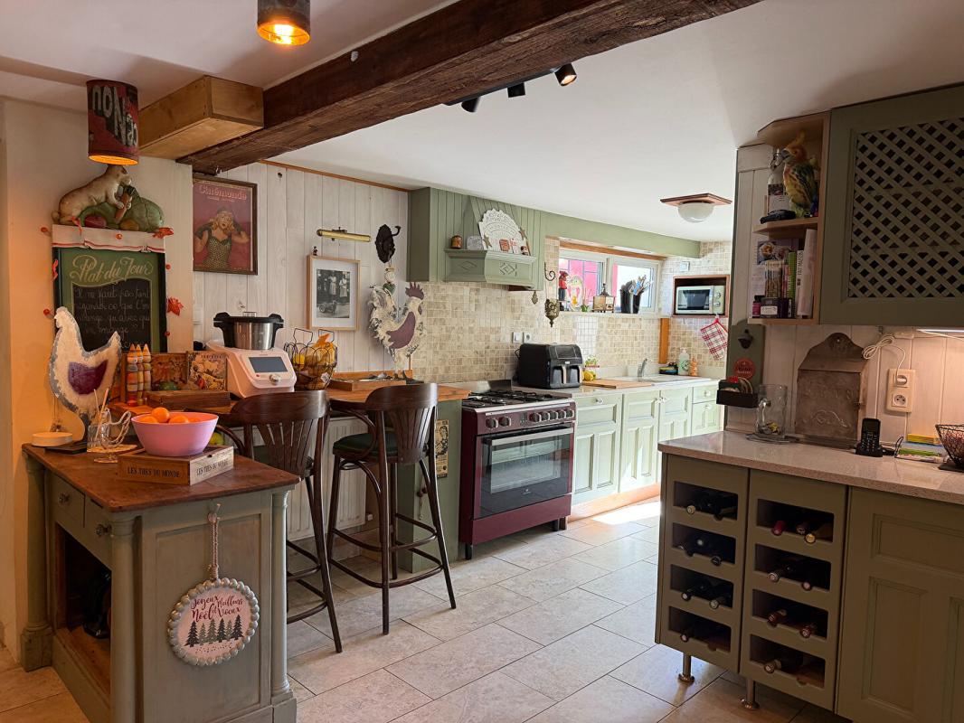 Le niveau inférieur propose une cuisine spacieuse et conviviale, prolongée par une salle à manger et un salon chaleureux équipé d'un poêle à granulés récemment installé. Le salon donne directement accès au jardin. Ce niveau comprend également trois chambres et deux salles de bains.