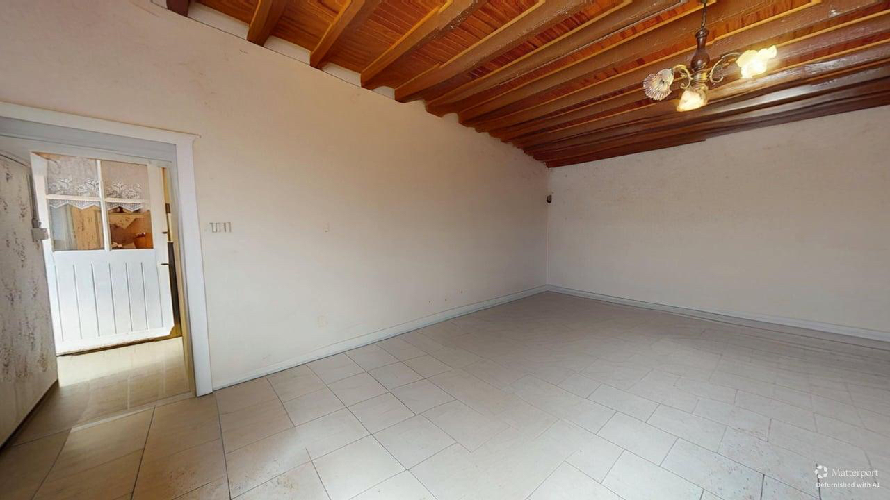 La maison, dont la toiture est en excellent état, se présente dans son état d'origine et offre un beau potentiel de rénovation. Elle dispose de deux chambres de plain-pied, permettant une vie facile et fonctionnelle.