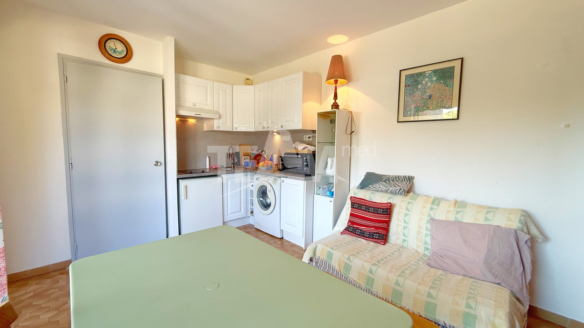 Coup de coeur pour ce beau T2 cabine de 30,31m² en dernier étage de la résidence le castelmare, juste en face de la mer. Terrasse ensoleillée exposition Sud-Est, climatisation réversible et parking privé sécurisé. Un emplacement de rêve !