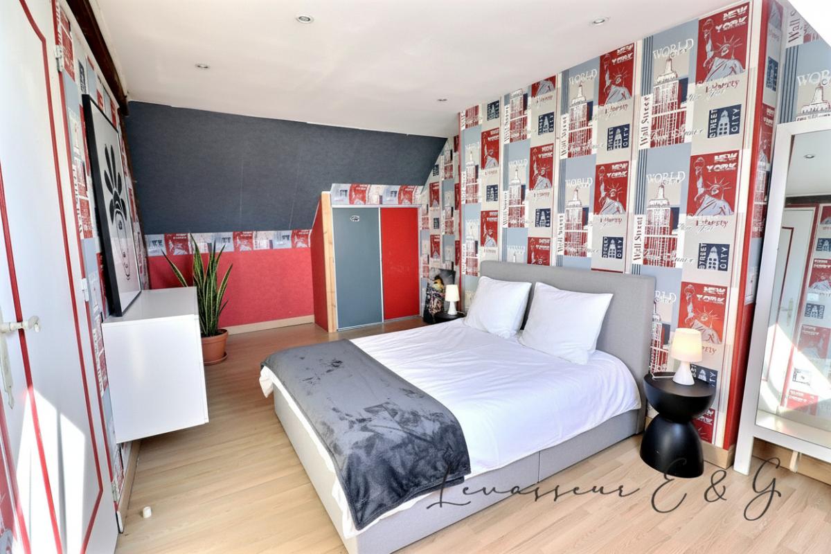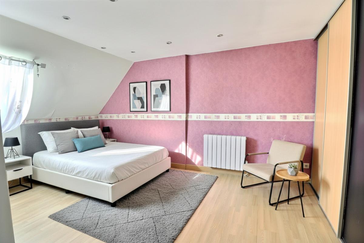 A l'étage, un grand palier dessert deux belles chambres, offrant des espaces nuit bien distincts, parfaits pour une famille ou pour aménager un bureau.