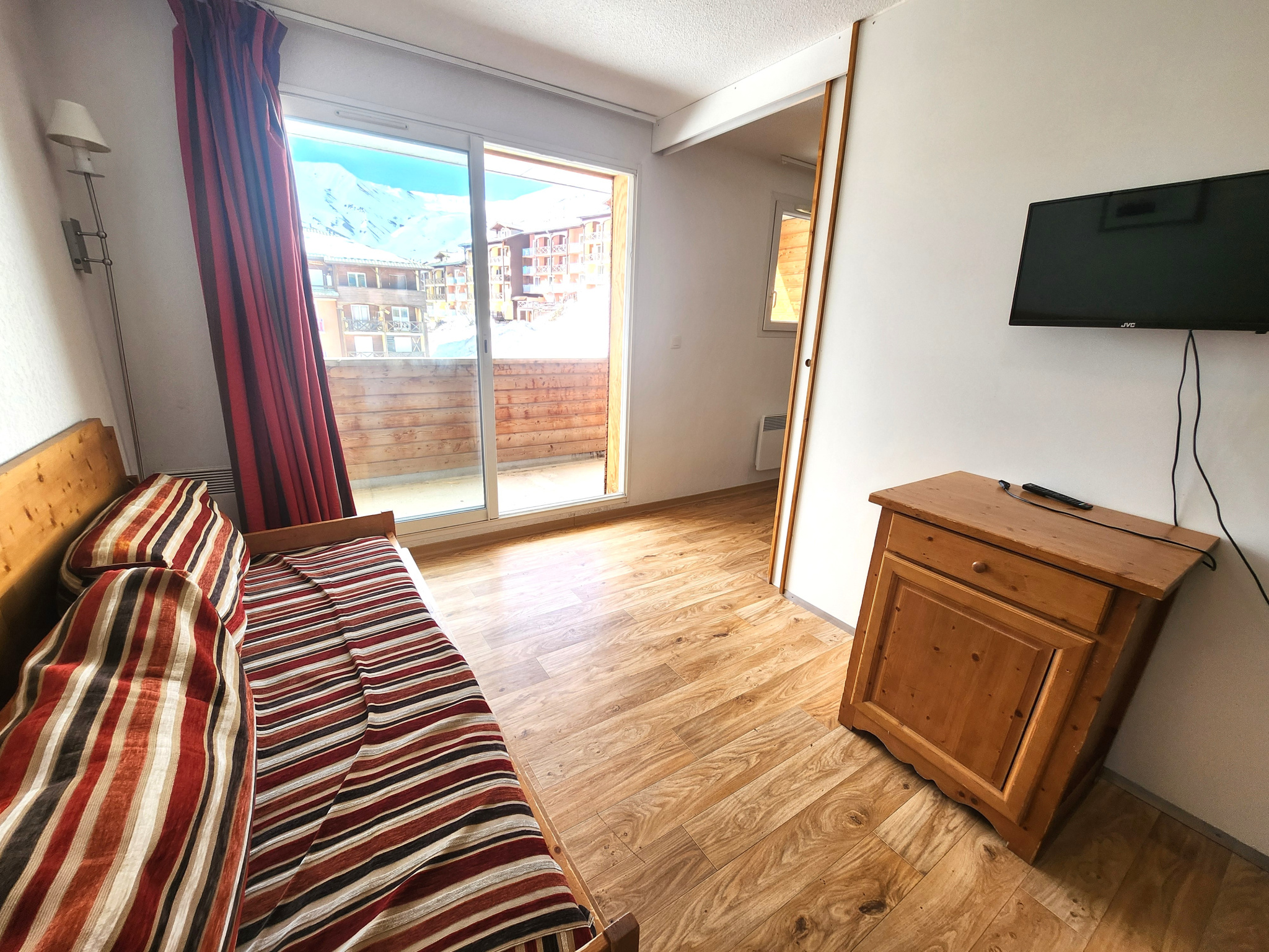 Au pied des pistes de la station de la Foux d'Allos, dans la résidence de tourisme Les Cimes du Val d'Allos, évoluez vers un appartement de 35.95 m2 avec chambre indépendante et alcove avec lits superposés pouvant être fermée. Les couchages se complètent avec un canapé lit pour un total de 6 couchages.