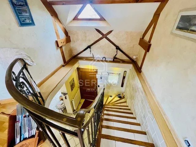 Sous-sol totalement aménagé d'environ 70 m2: salle de jeux, chambre supplémentaire, salle d'eau, buanderie, rangement, atelier.Garage d'environ 31 m2 et un petit chalet en bois à l’entrée en...