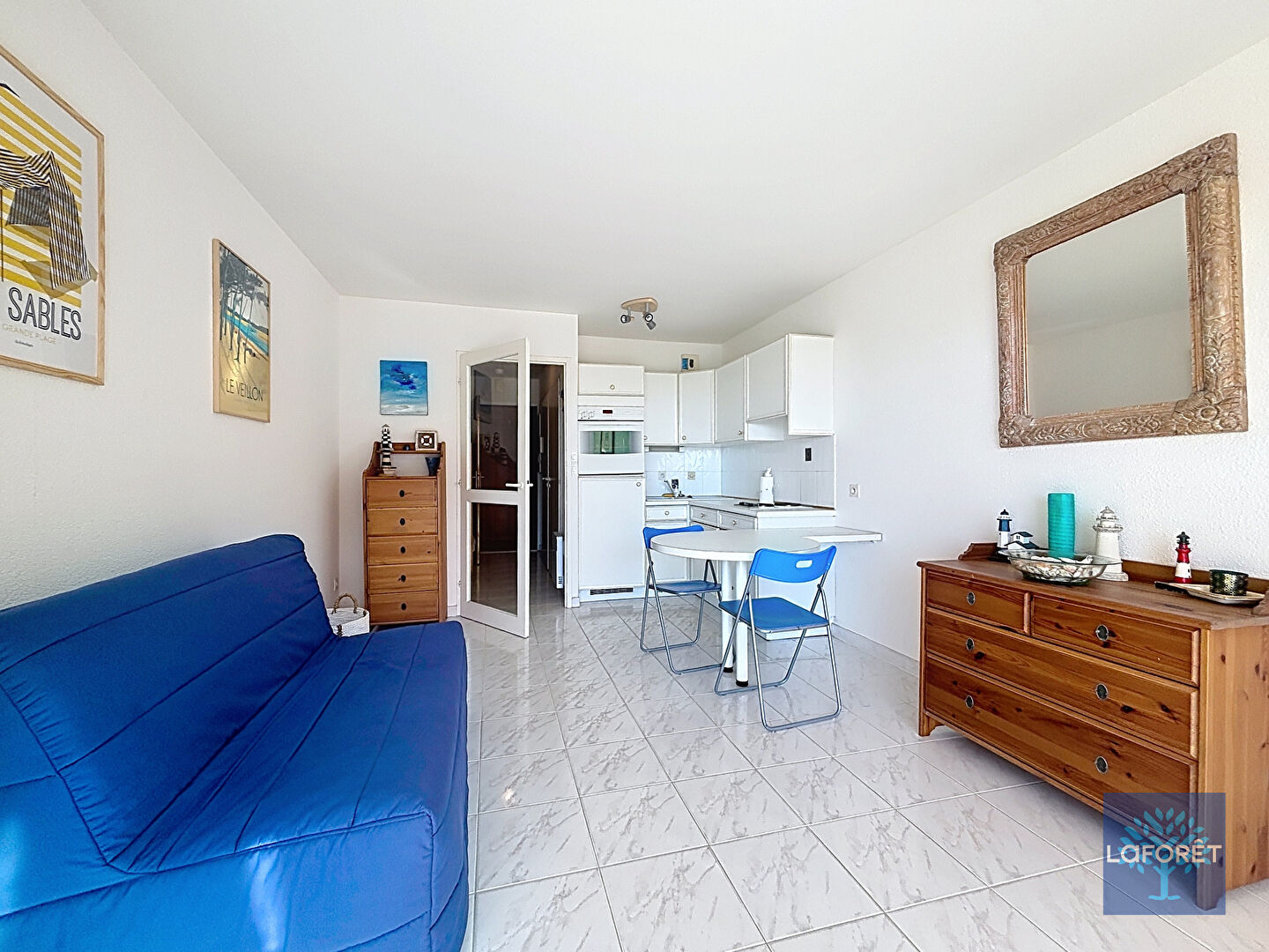 LA CHAUME - COTE SAUVAGE - Dans une résidence de grand standing avec piscine, ce T1 bis vous offre une très belle vue sur l'océan avec le phare des Barges. Lumineux, fonctionnel, il offre la possibilité d'un couchage dans l'entrée avec son alcôve. Mais surtout, lors des nombreuses journées ensoleillées aux Sables, sa terrasse vous propose des moments de détente uniques !