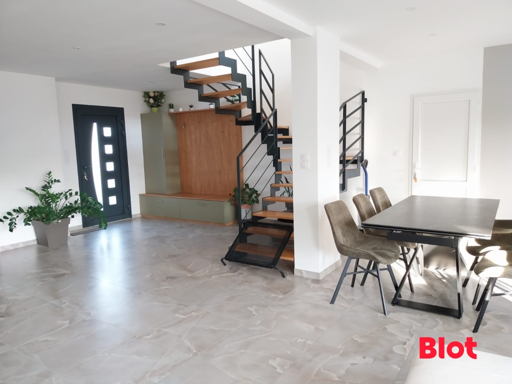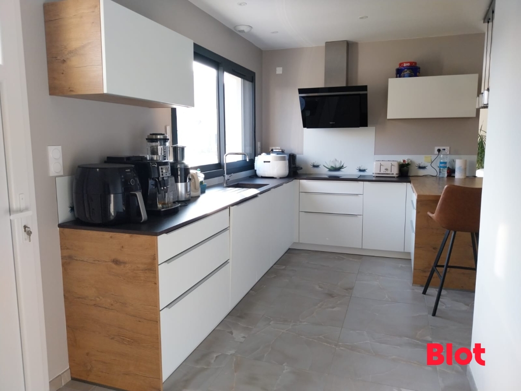 L'extérieur de la maison ne fait pas exception à la qualité de ses aménagements intérieurs. Le grand garage carrelé et isolé offre un espace sécurisé pour votre véhicule et tout le stockage dont vous avez besoin. À l'extérieur, la terrasse avec pergola devient un véritable prolongement de votre espace de vie, idéale pour recevoir ou simplement vous détendre en toute tranquillité. Le terrain de près de 300 m², entièrement clos et sans vis-à-vis, vous garantit une intimité totale, offrant ainsi un espace extérieur sécurisé pour vos enfants ou vos animaux.